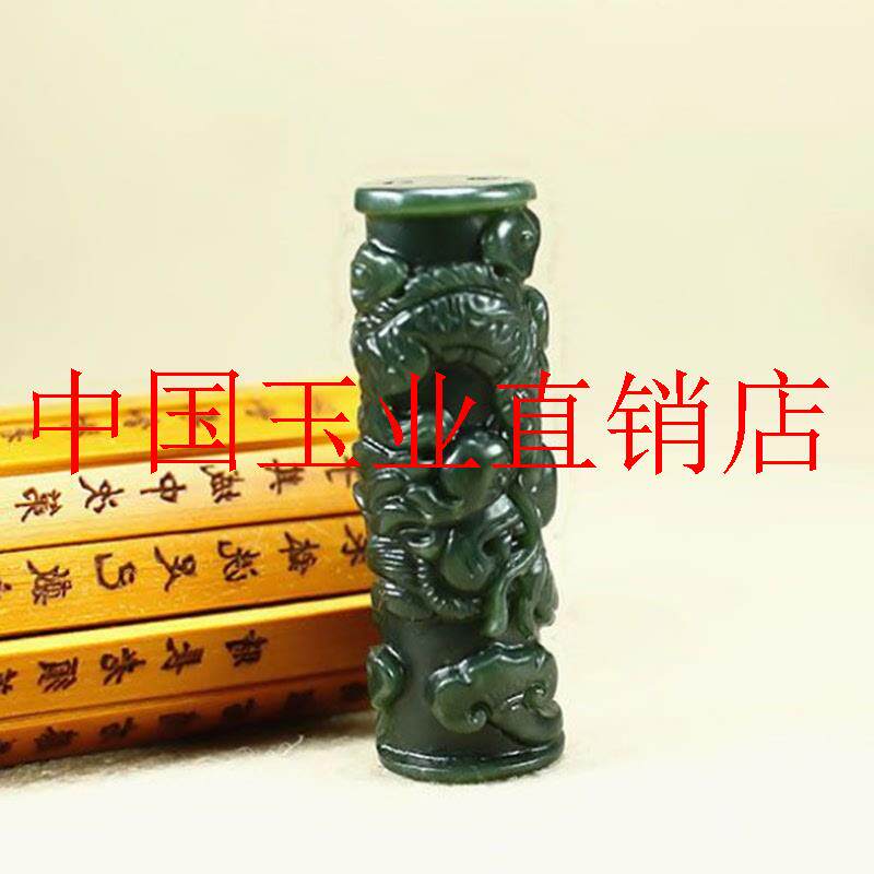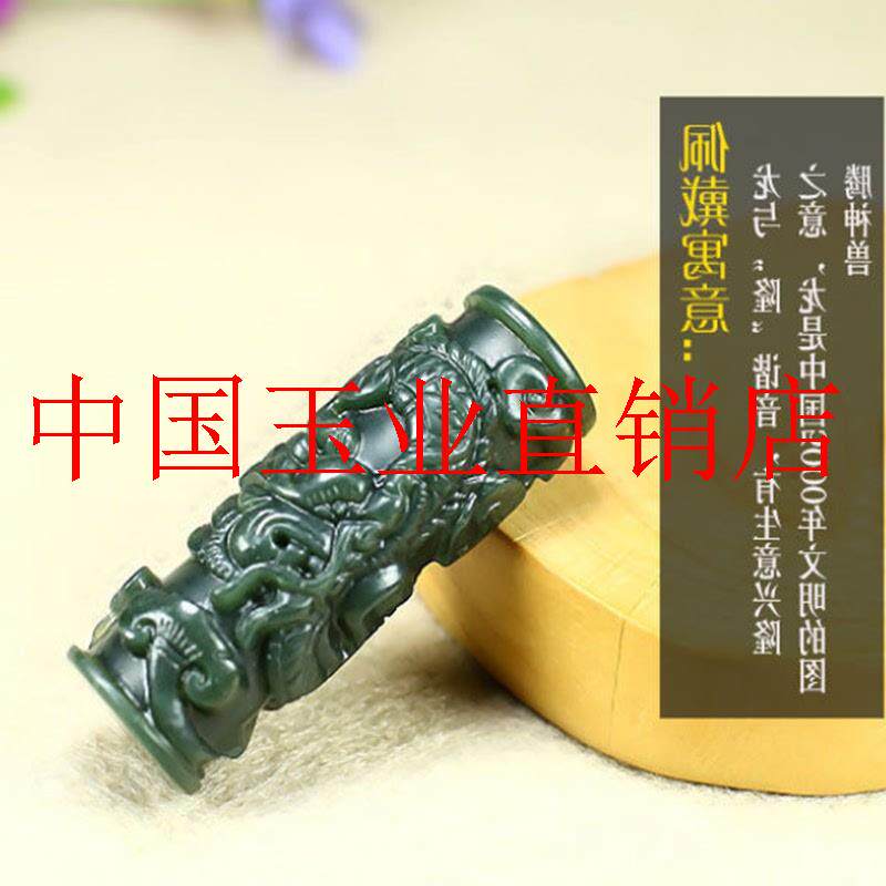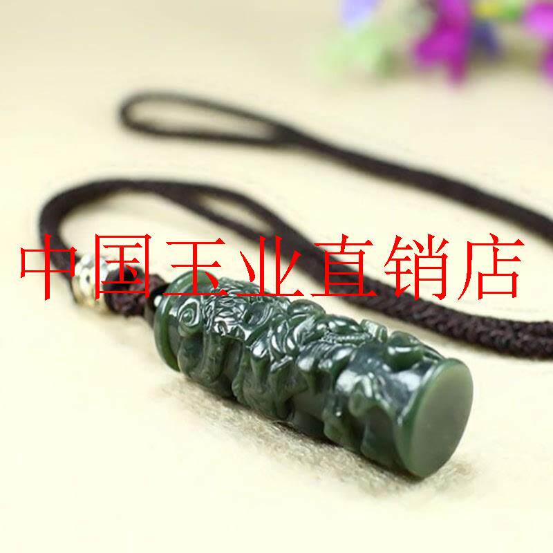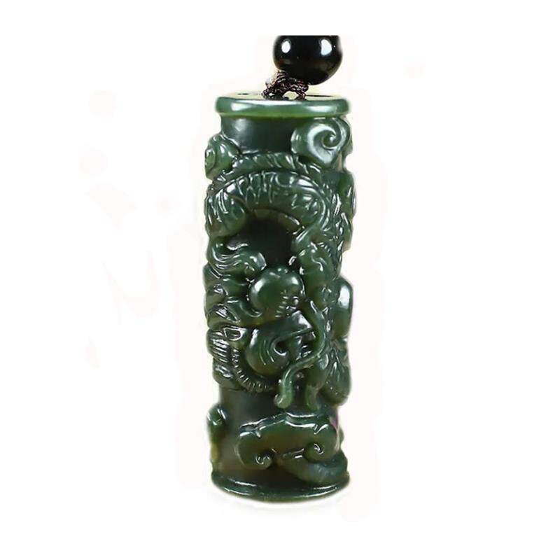 📚 新疆和田玉龙柱吊坠精雕细刻龙凤民族玉吊坠墨玉生肖项链男女士款