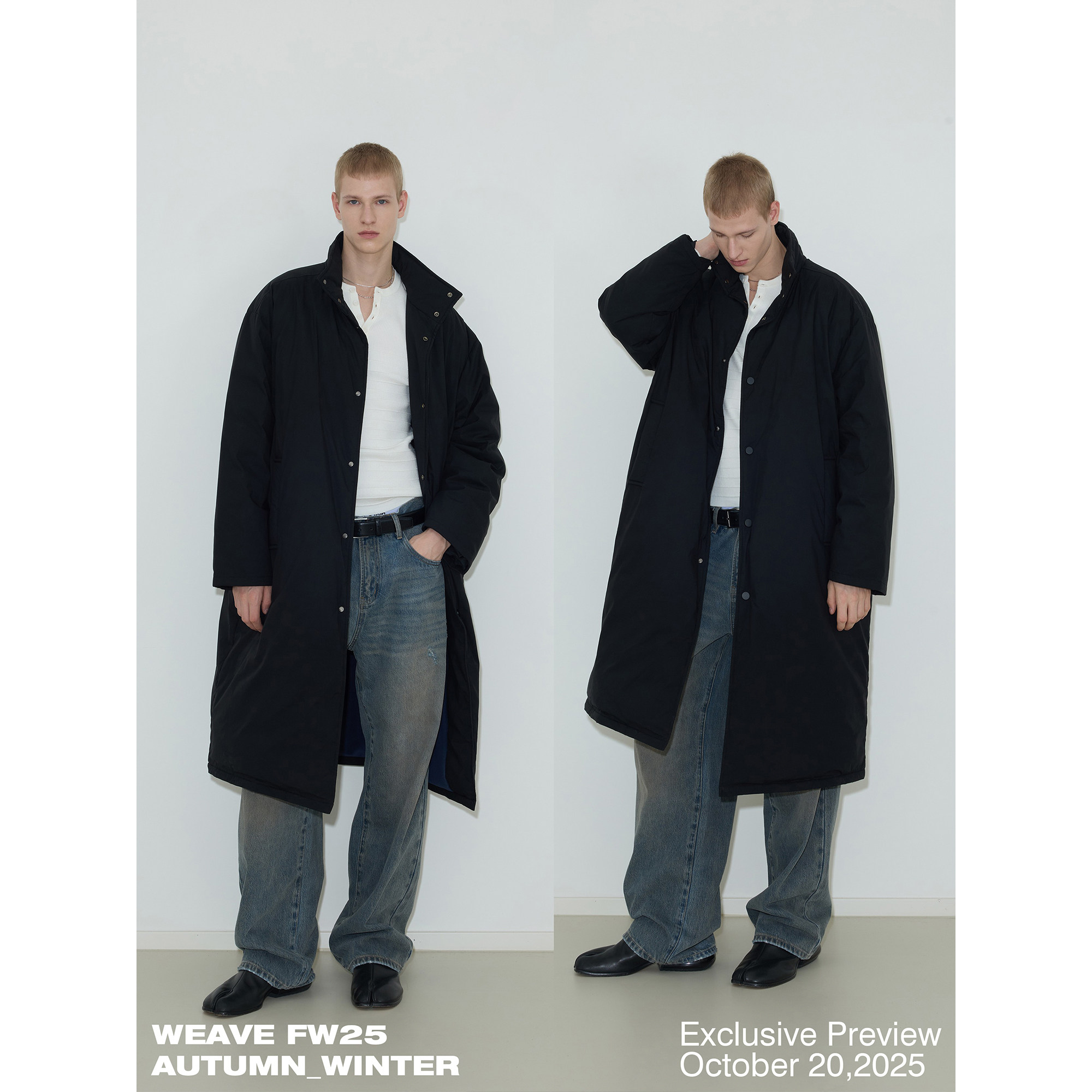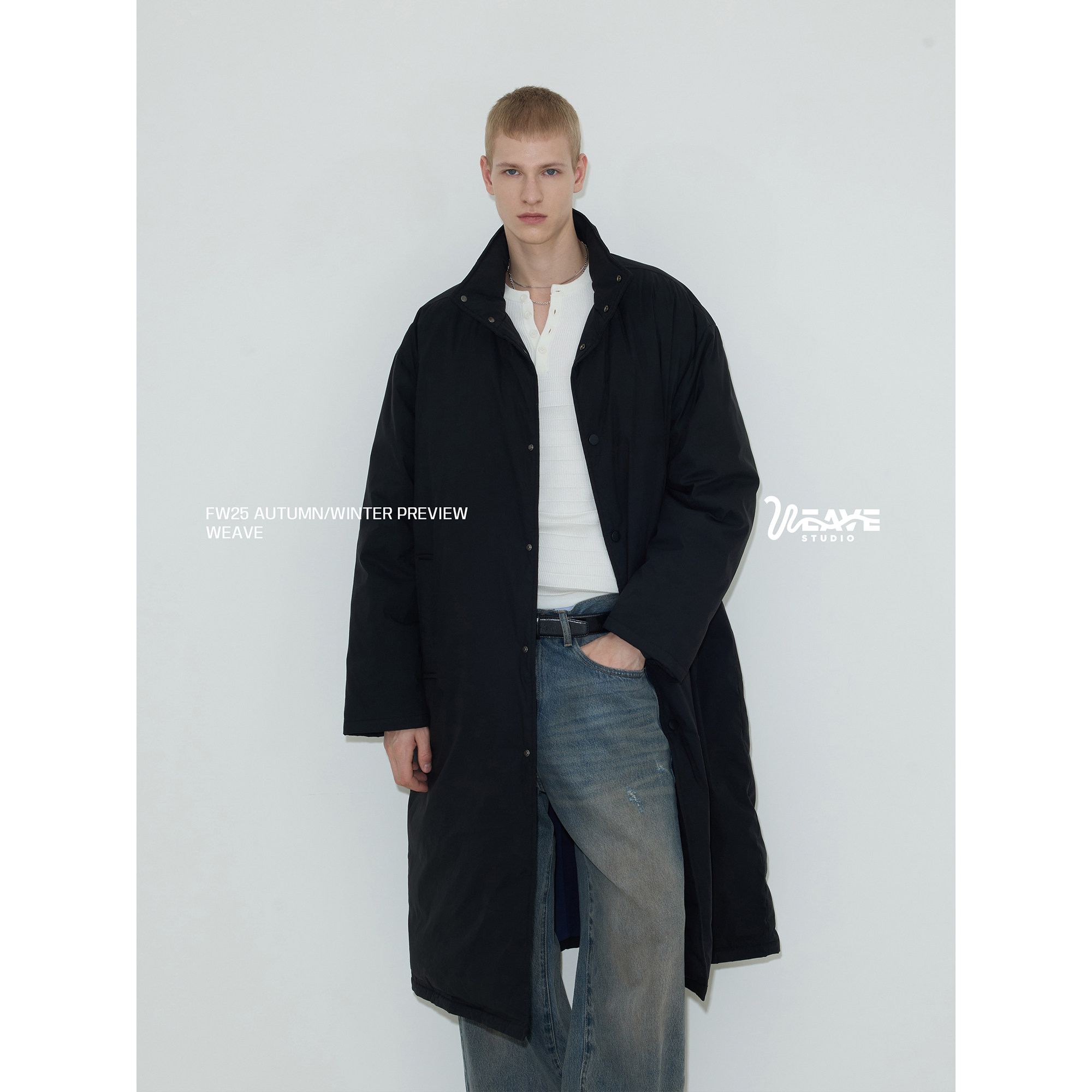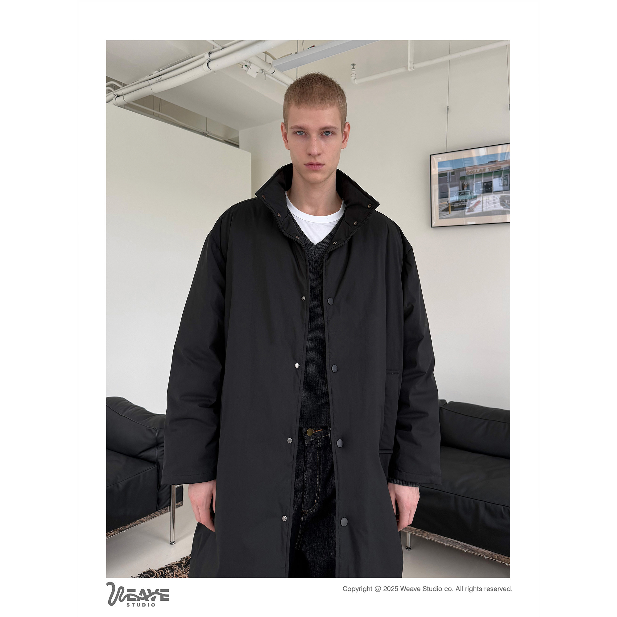 📚 weave 时髦御寒 黑色90白鸭绒长款羽绒服冬季立领宽松过膝厚外套