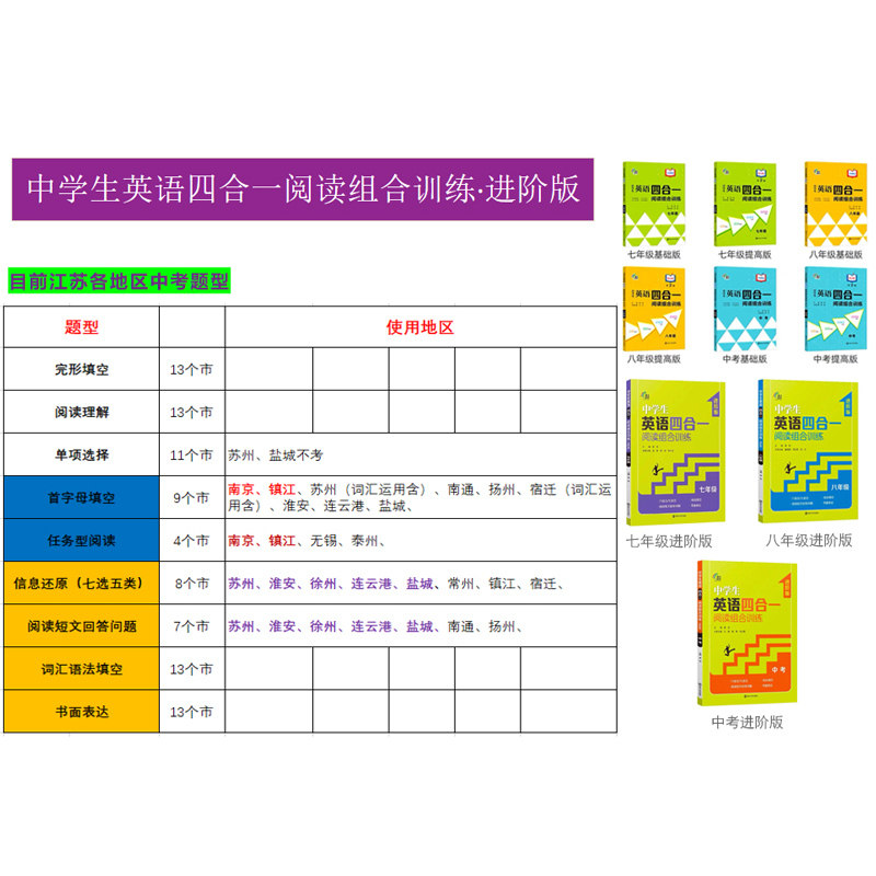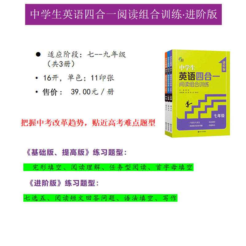 🌟总结:南京南大教辅初中英语任务型阅读与完形填空全套四合一组合训练,绝对是中考时文阅读提分训练与完形填空的必备良品。强烈推荐给想要提高英语成绩的学生们!