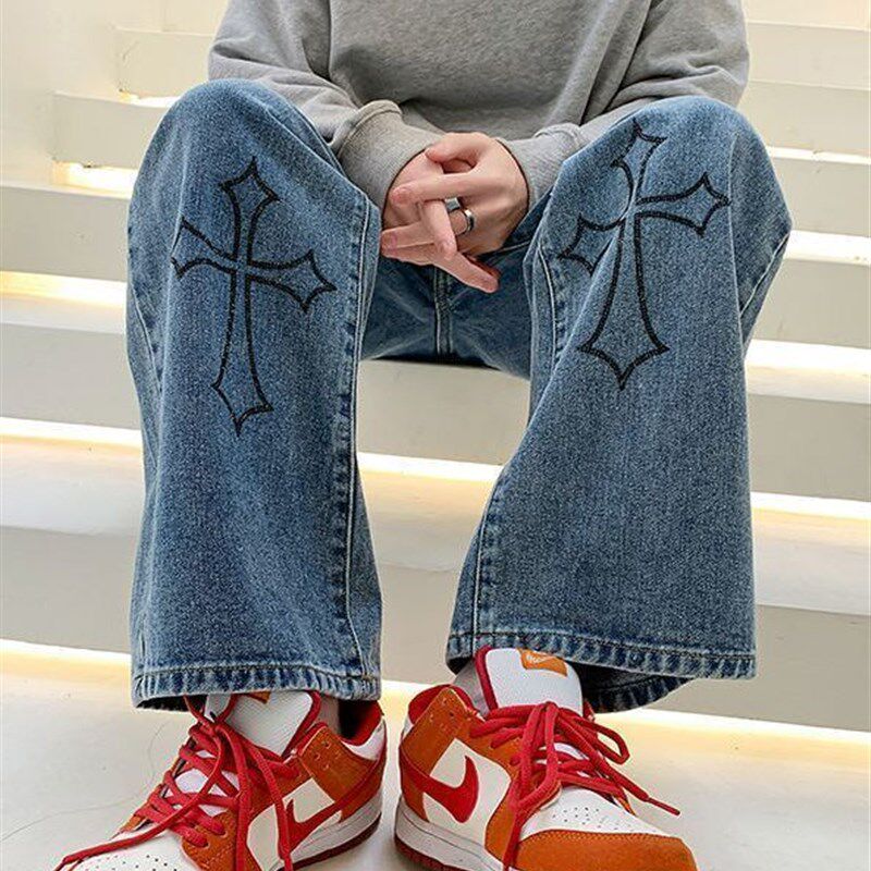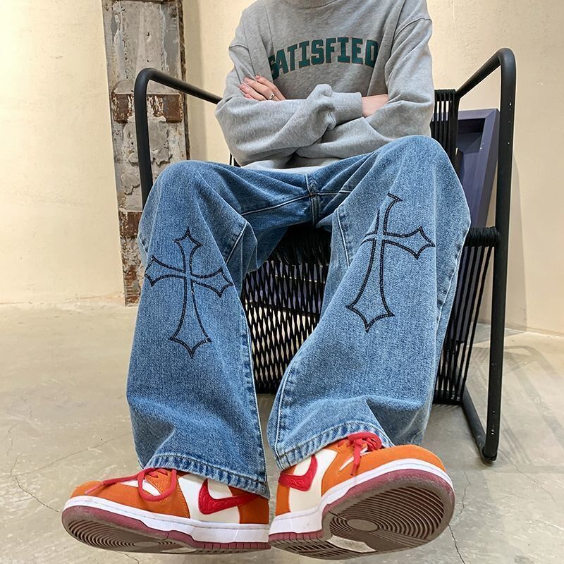 📚 童装夏季十字架牛仔裤男直筒宽松vibe风裤子2023新款系绳阔腿长裤