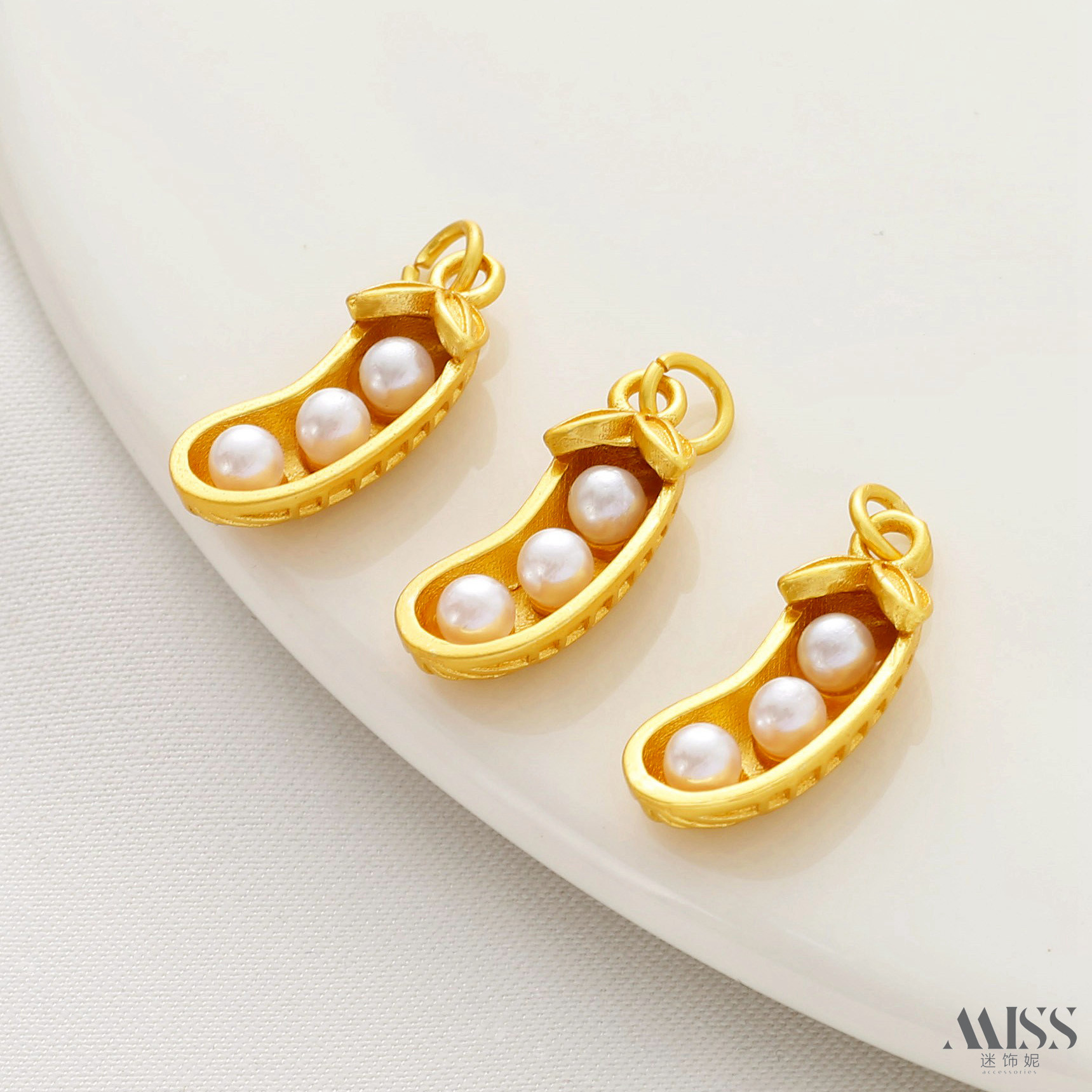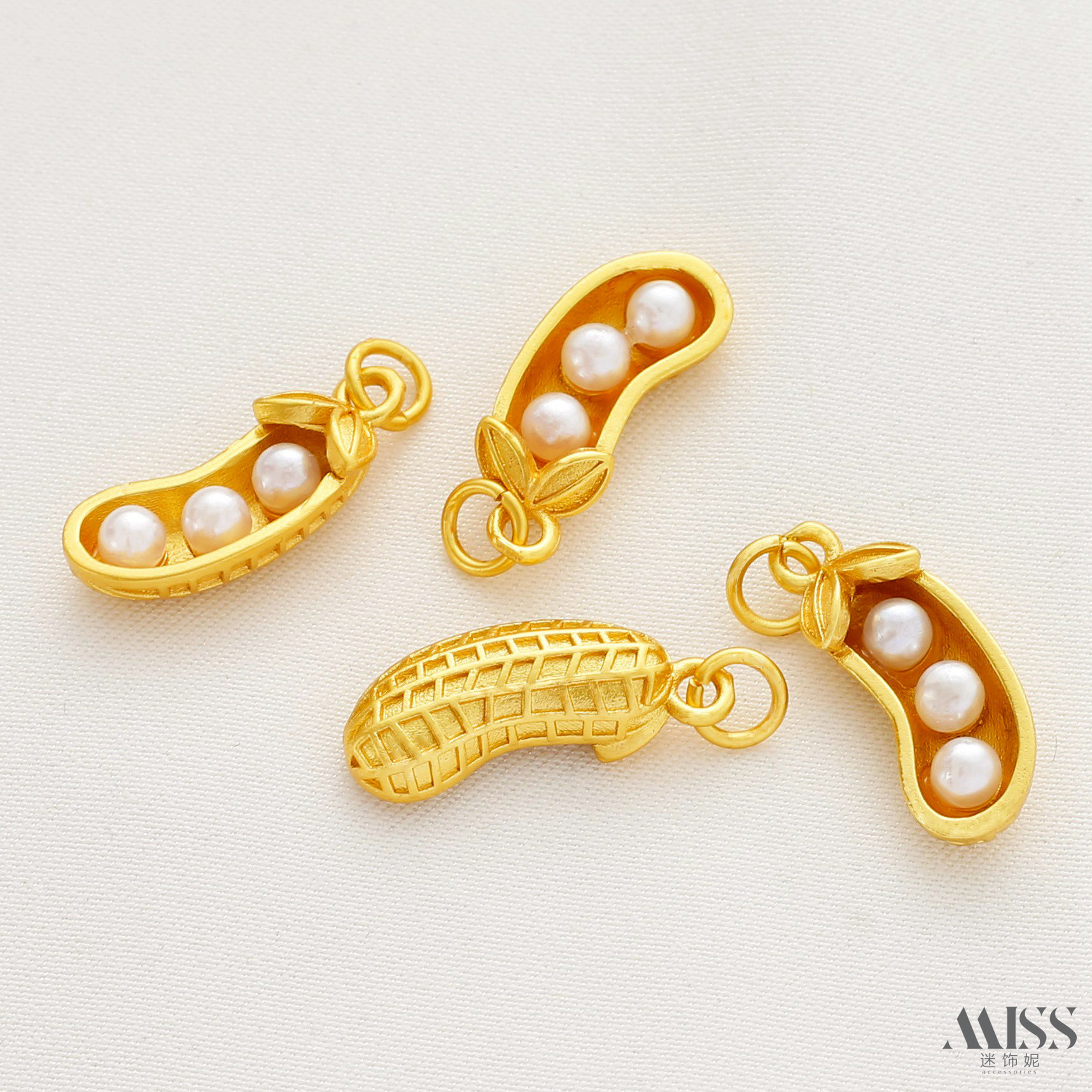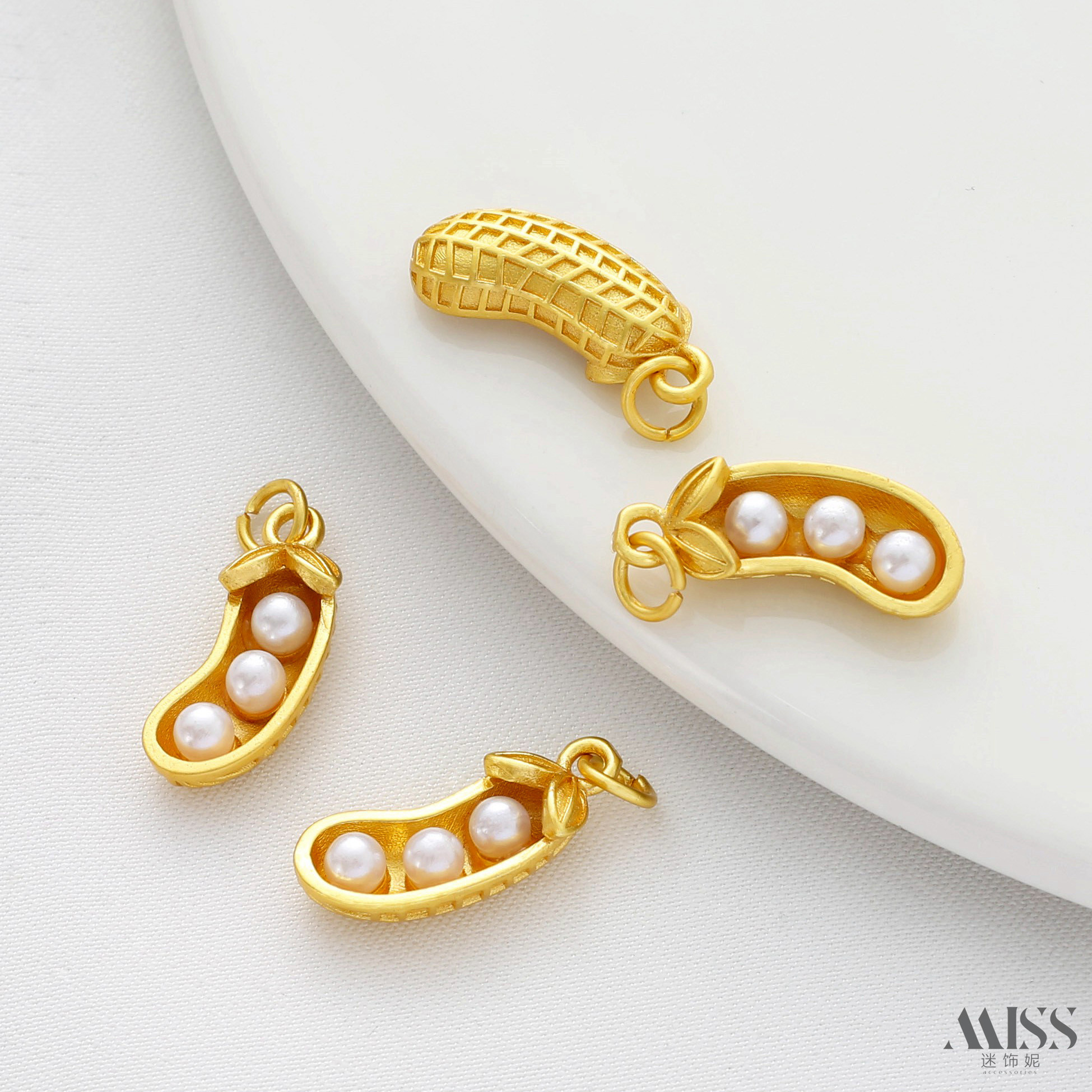 📚 古法哑金保色镶贝珠花生吊坠diy手链项链珍珠挂件吊饰品配件材料