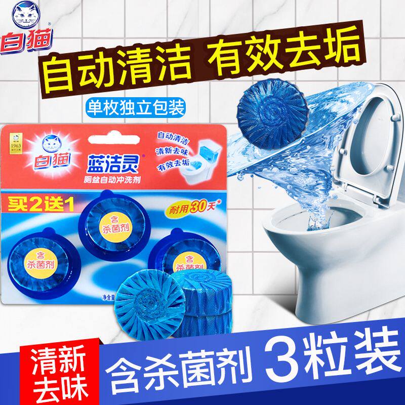 📚 12粒白猫蓝洁灵洁厕蓝泡泡马桶清洁剂无磷厕盆自动冲洗剂清洁除味