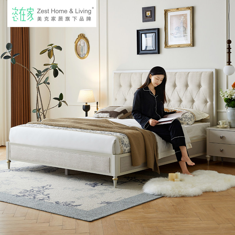 📚 美克/恣在家【流转】实木软包床轻奢布艺美家简约现代高端双人床