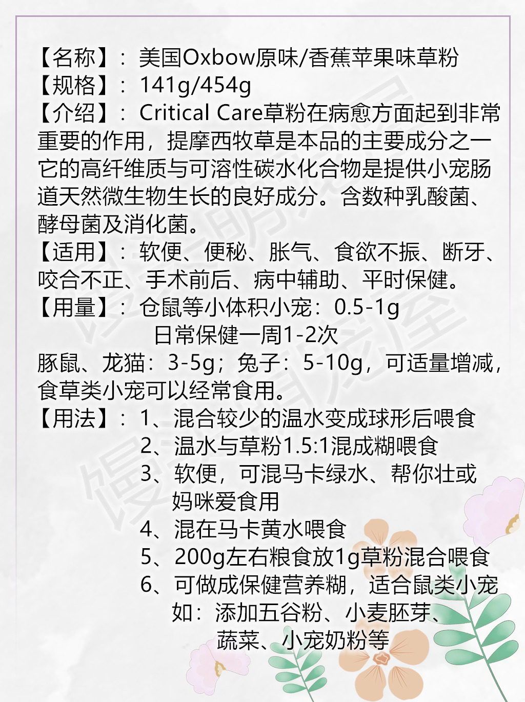 📚 包邮美国oxbow爱宝草粉病危急救辅助补给兔子龙猫豚鼠高营养品