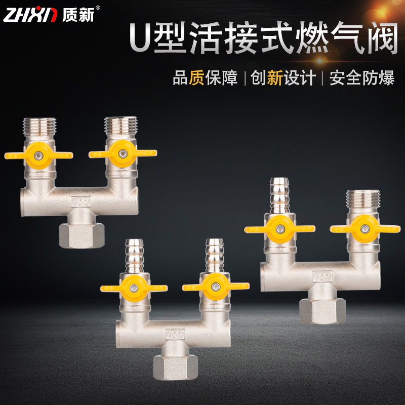 📚 天然气煤气d管一分二u型球阀黄铜加厚dn15内丝连接活结阀门