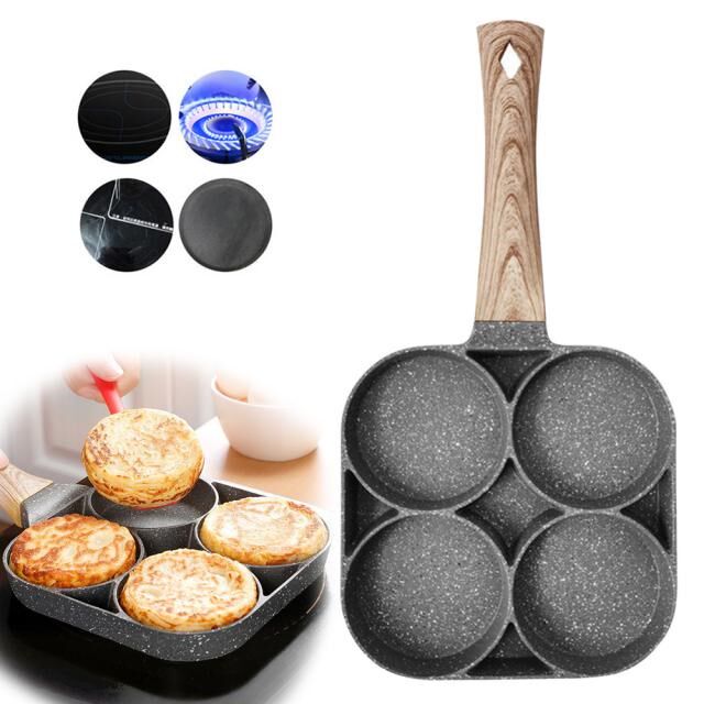 📚 4 Hole Frying Pot Pan Thickened Omelet Pan Non-Stick Egg Pan