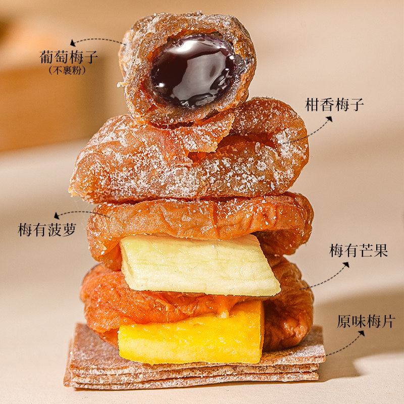 🍃这款零食的口感丰富多样,梅子的味道浓郁而清新,每一口都能感受到不同的口感和味道。尤其是芒果和青梅的搭配,真的是让人欲罢不能。😋