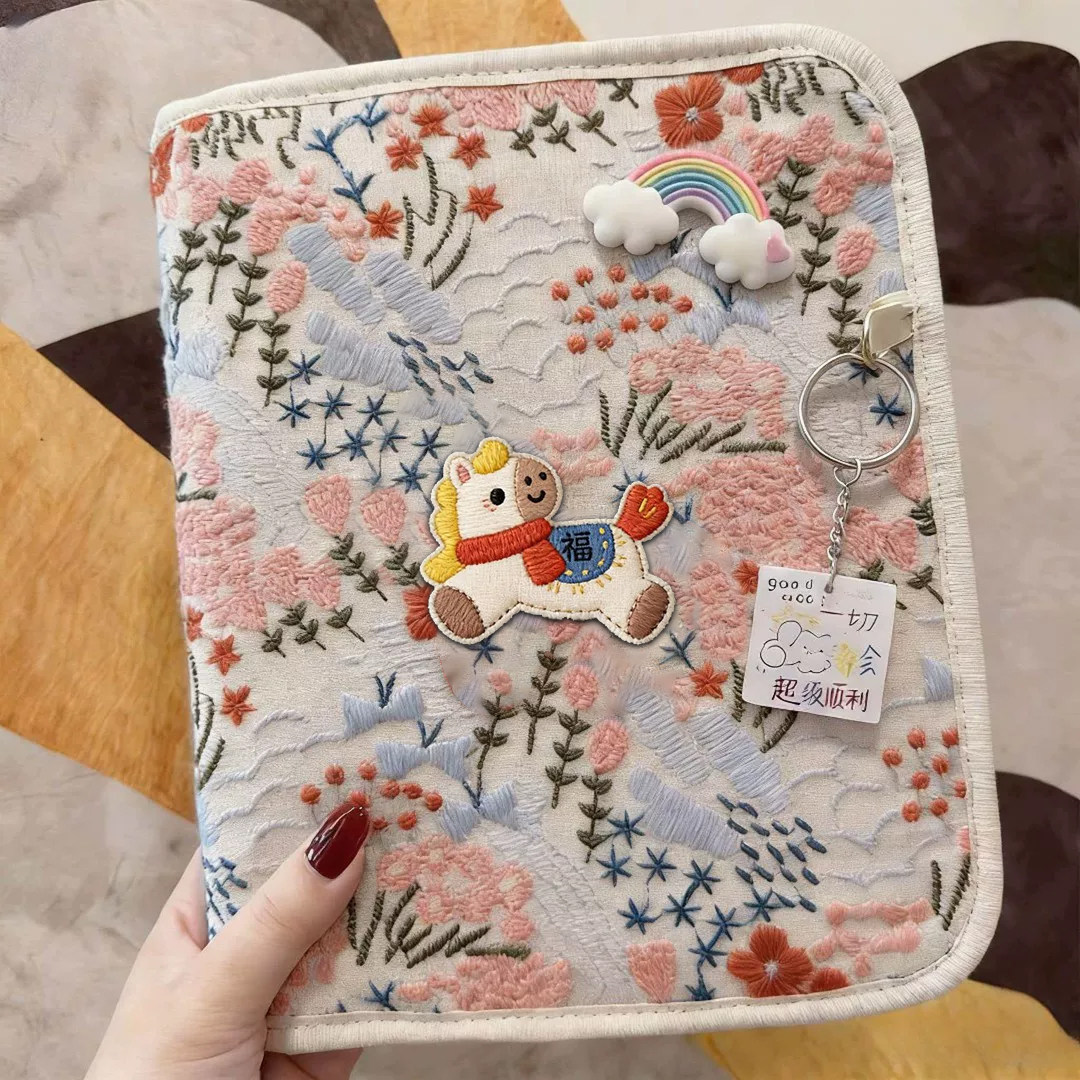 📚 孕检收纳册刺绣小马带拉链包2026年新款可折叠产检报告单马宝宝怀孕证件便携文件夹孕妇孕期档案初期用品手册