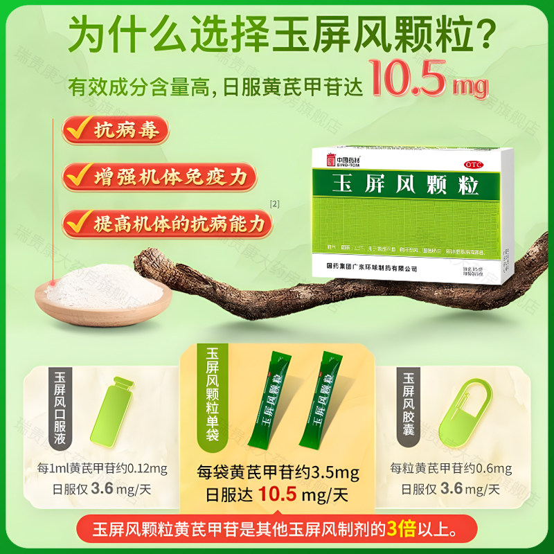 📚 玉屏风颗粒德众中国药材官方旗舰店成人玉屏风散中成药小儿口服液