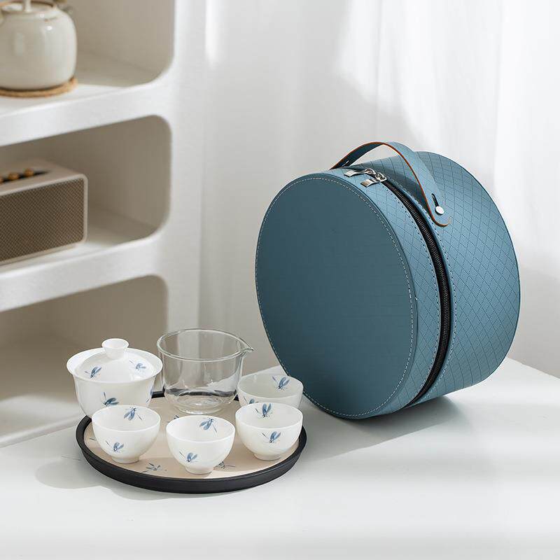 📚 羊脂玉白瓷便携式旅行茶具泡茶盖碗一壶4杯套装带吸水茶盘