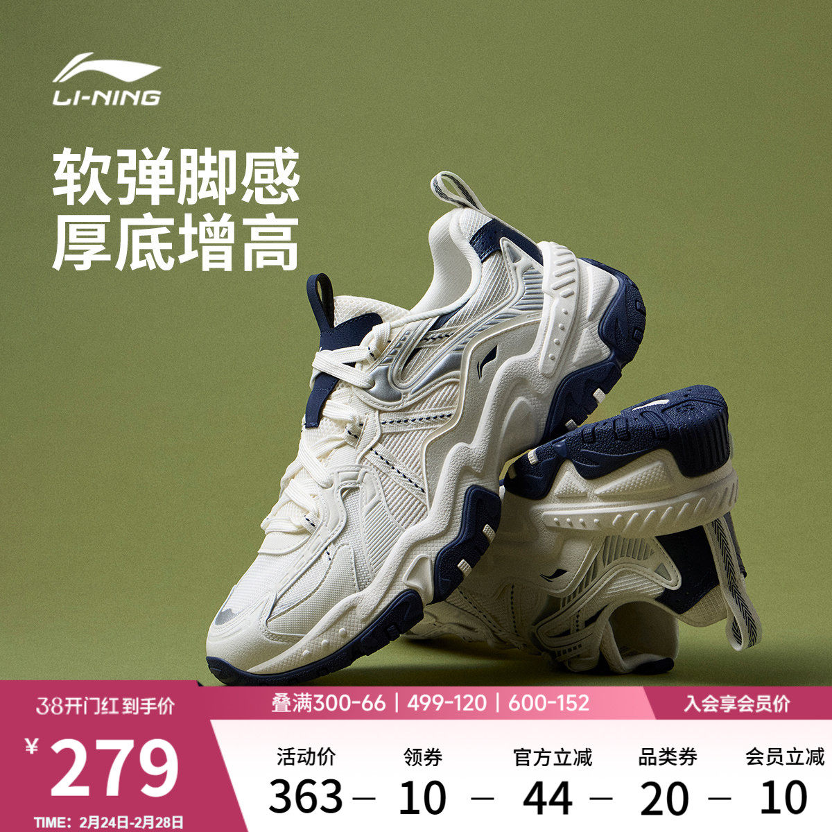 08¥ HU071 iH4rUKEkpwg¥ https://m.tb.cn/h.iZhEaSl 李宁红糖丨休闲鞋男鞋2026新款春夏季复古厚底老爹鞋增高运动鞋子 --------------------- 【原售价】499元 【现售价】363元。