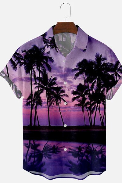 📚 Hawaiian Coconut Print Summer Short Sleeve Shirt印花夏季短袖