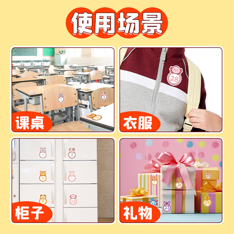 📚 学号贴卡通数字贴纸PVC防水号码贴幼儿园活动贴编号贴即时贴装饰贴画自粘墙贴桌贴标记贴水杯贴分类标签臂贴