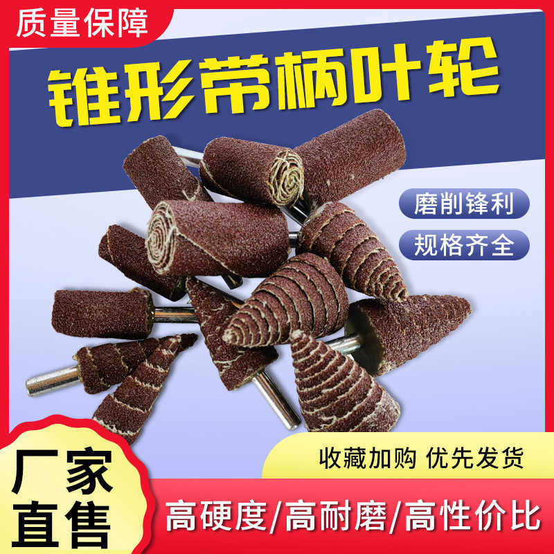 📚 手枪钻磨头带柄锥形页轮千叶磨头6柄砂布磨头千叶片拐角抛光