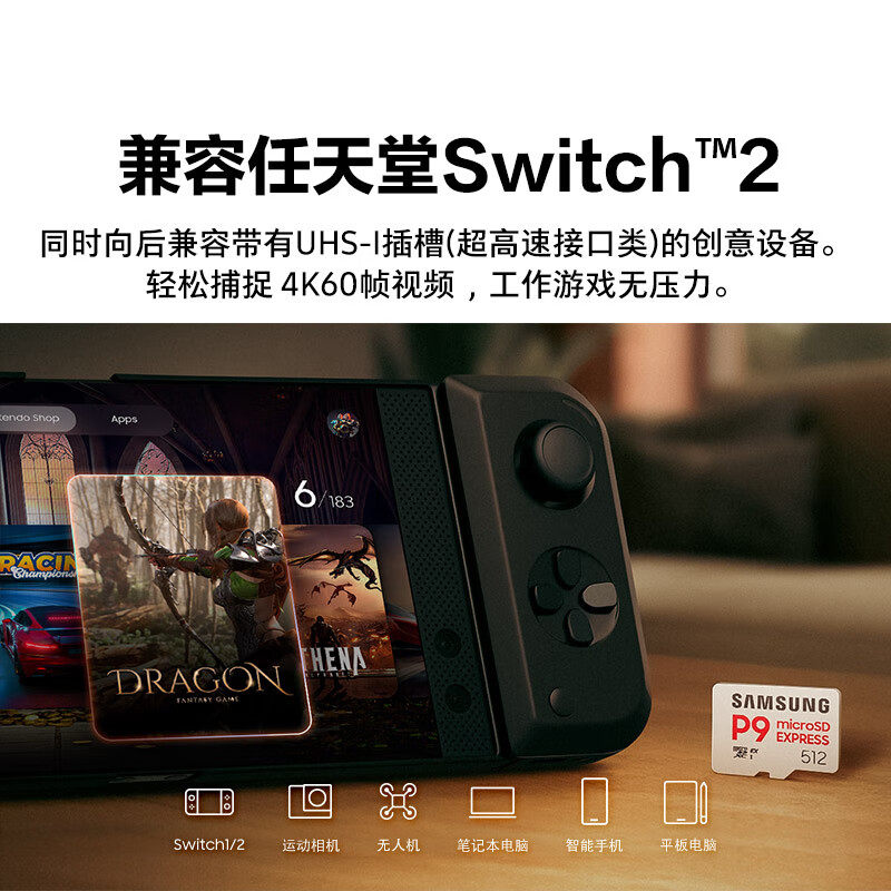 📚 三星P9固态存储卡适配Switch2高速tf 256G内存卡大容量SD卡512G新