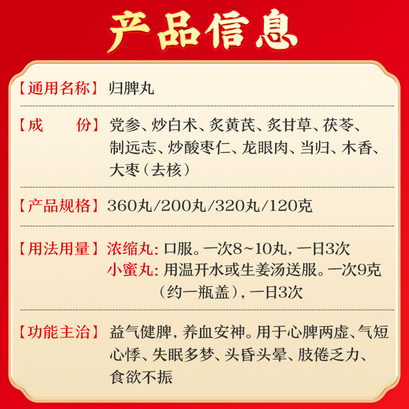 📚 九芝堂归脾丸200丸益气健脾养血安神气短心悸失眠多梦头昏调理药