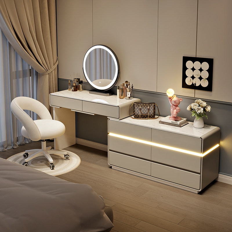 📚 2025新款梳妆台卧室现代简约小户型全实木化妆桌子床尾收纳柜一体