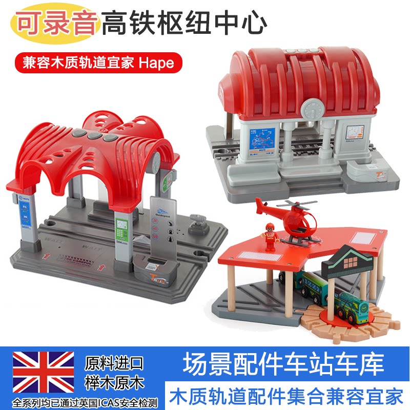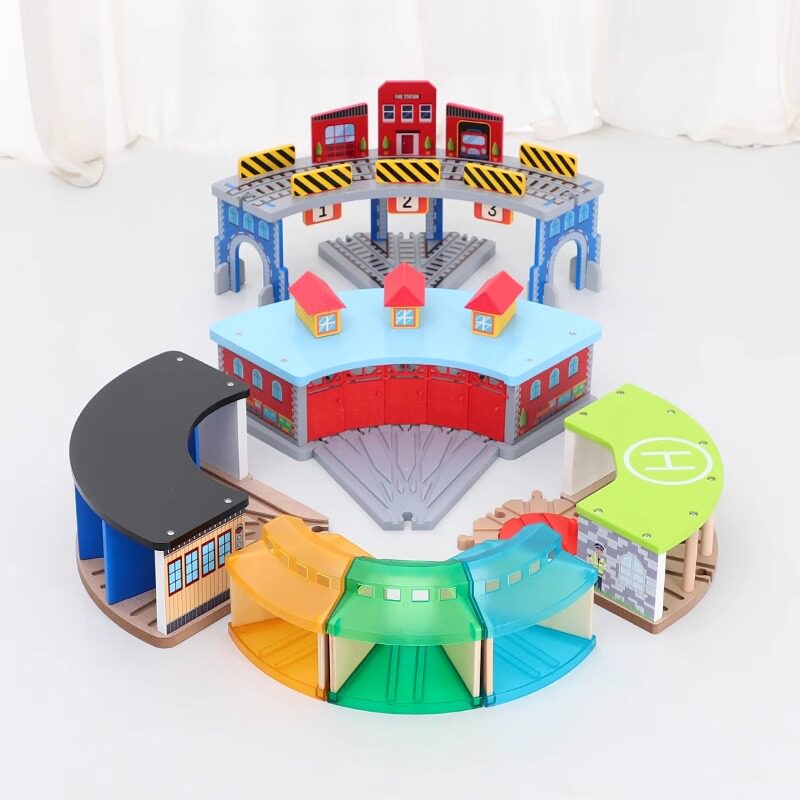 📚 车站车库停车库系列木质轨道小火车场景轨道配件兼容宜家hape玩具
