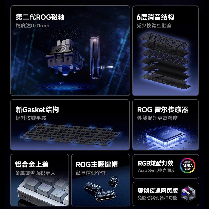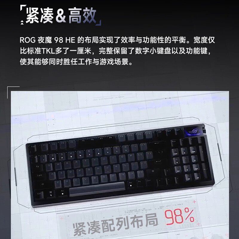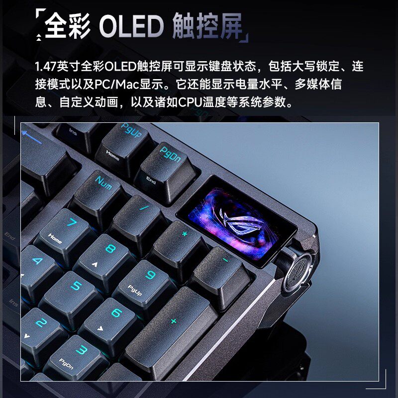 📚 ROG玩家国度 夜魔98 HE三模无线8K磁轴键盘OLED彩屏电竞游戏专用