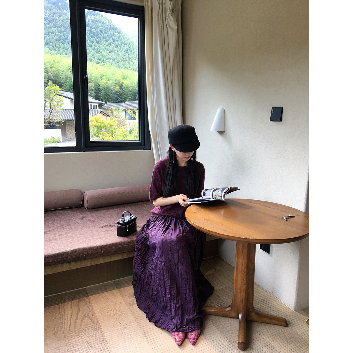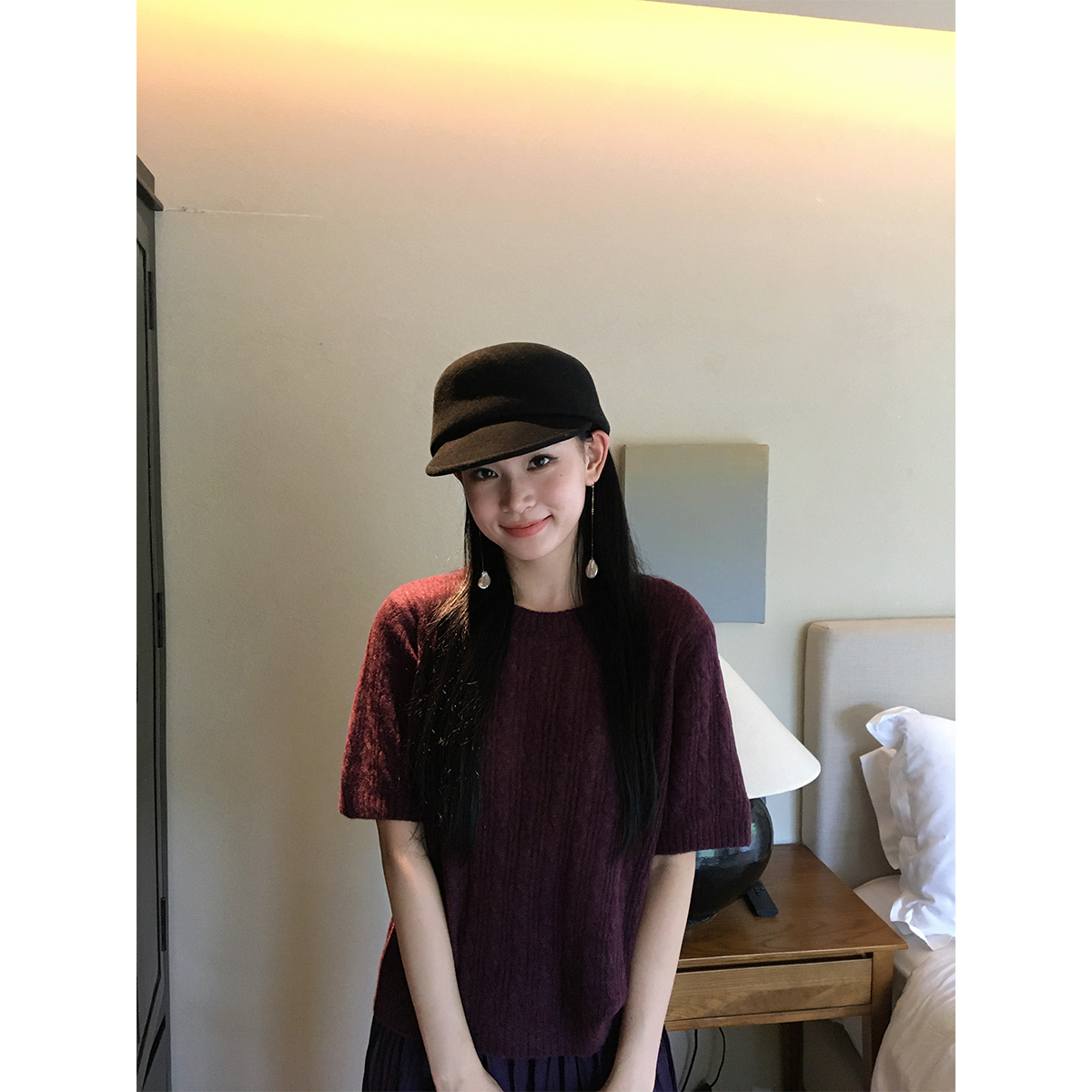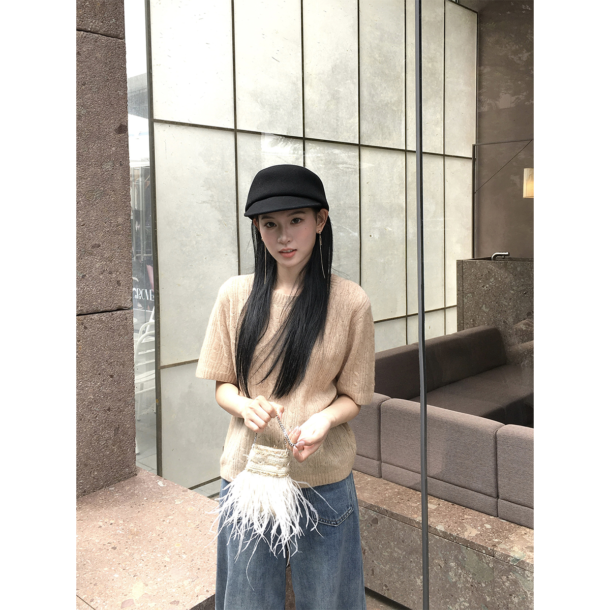 📚 黄亮Elovey“漫步墨尔本”天丝绵羊山羊绒麻花圆领短袖毛衣D01-3