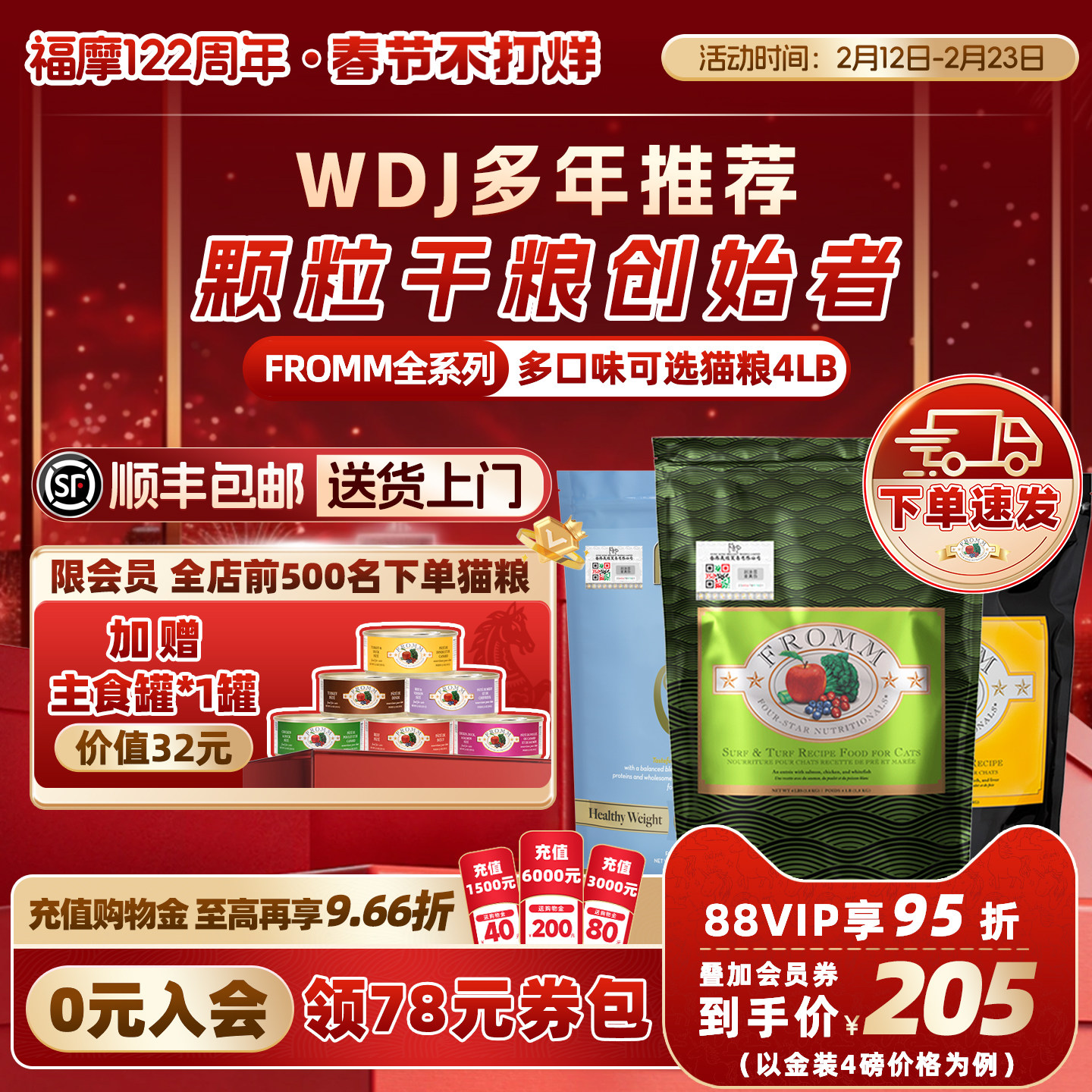 📚 【官方旗舰店】Fromm福摩无谷三文鱼鸭肉兔猎鸟鸡牛肉蔬果猫粮4LB
