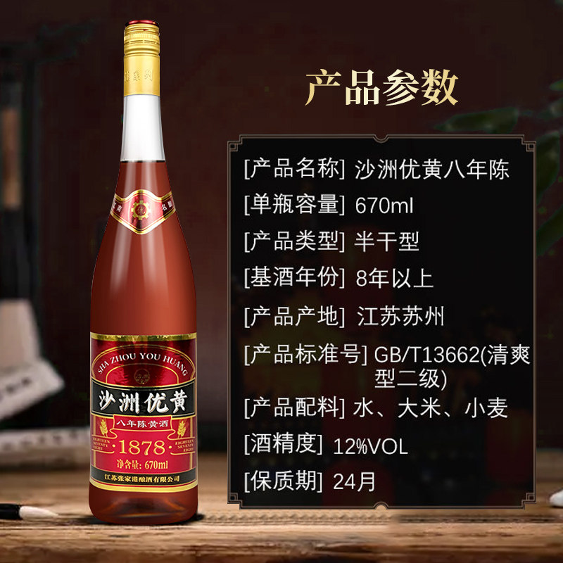 📚 (2箱价)沙洲优黄沙优八年陈12度1878黄酒670ml*6瓶*2箱