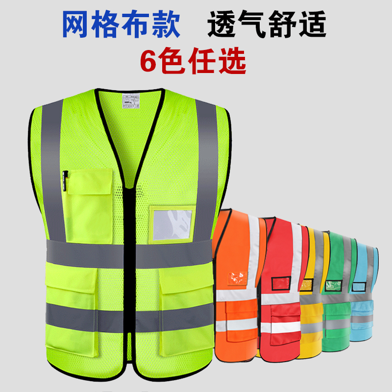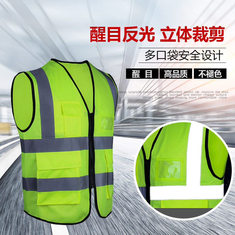 📚 反光背心马甲工地施工防护服多口袋骑行安全环卫工人交通路政外套