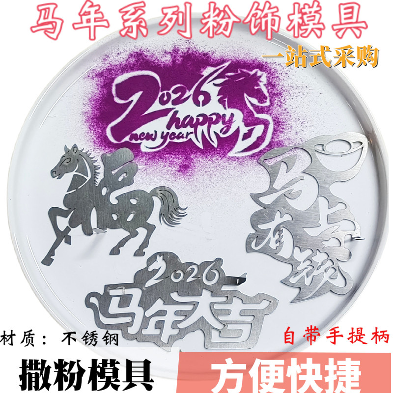 📚 2026新年快乐Happy New Year马年大吉撒粉模具福马摆盘粉饰磨具