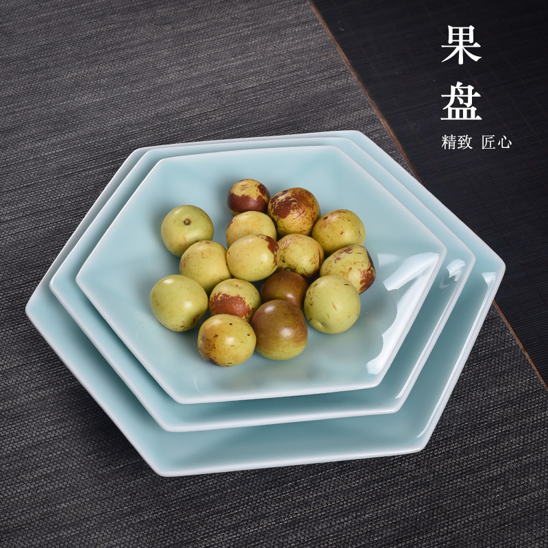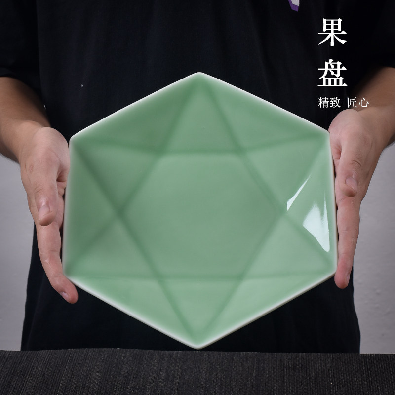 📚 龙泉中式餐盘青瓷饺盘7至9英寸创意六边形盘子酒店家用型菜盘简约