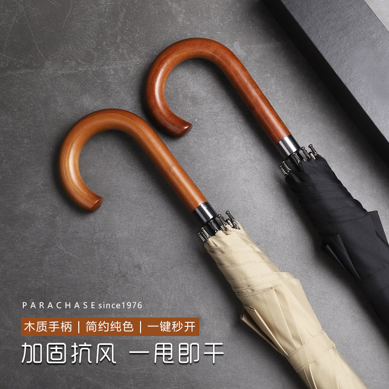 📚 精选双人雨伞男日系商务英伦复古绅士长柄直杆伞弯把超大号自动伞