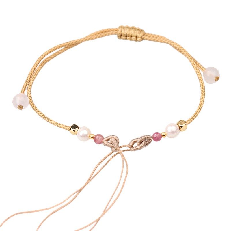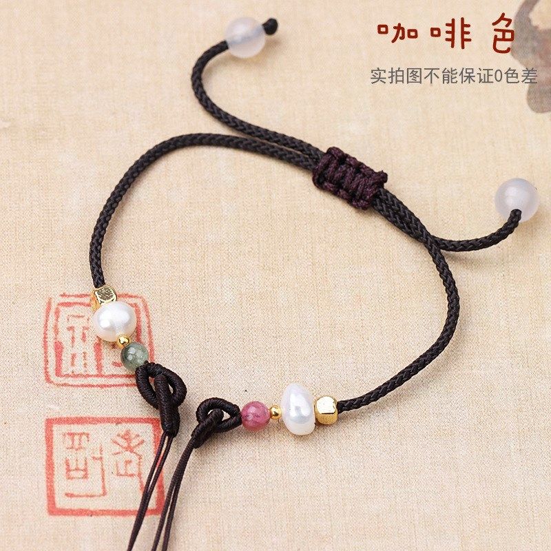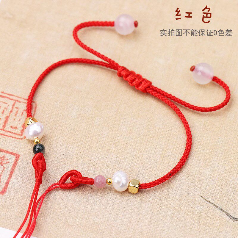 📚 细款碧玺珍珠手链可穿珠iy半成品金饰吊坠红绳免编闺蜜手绳