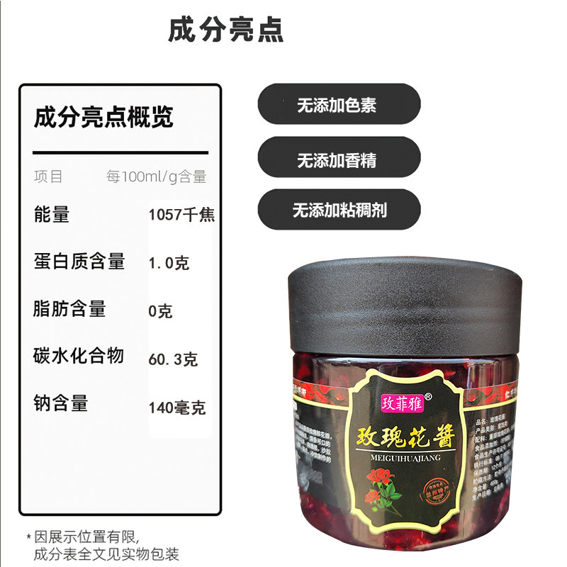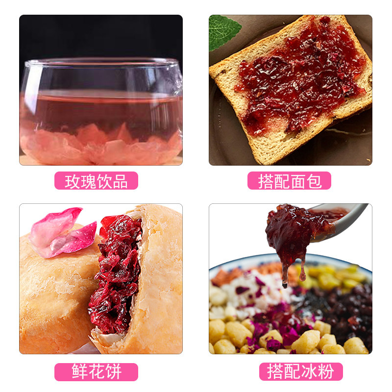 📚 甘肃苦水玫瑰酱食用玫瑰花酱冲饮冰粉烘焙专用奶茶鲜花饼月饼家用