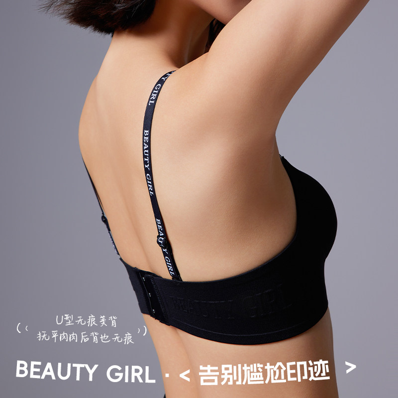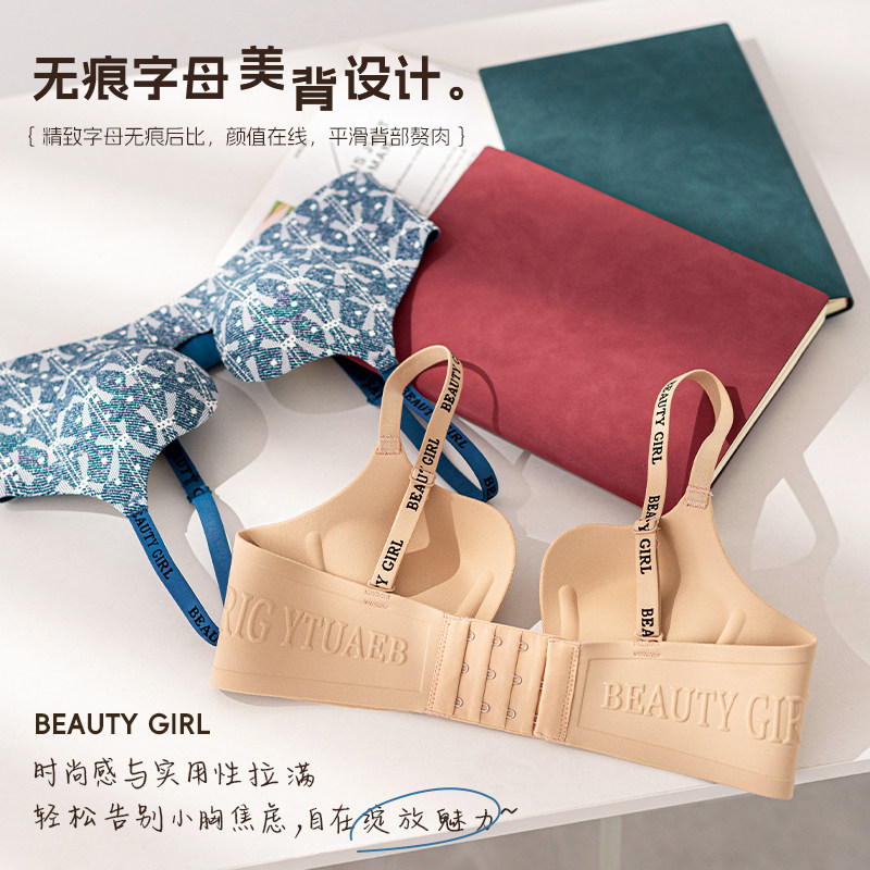 📚 无痕深V性感内衣女士小胸聚拢显大加厚3cm收副乳防下垂撞色文胸罩