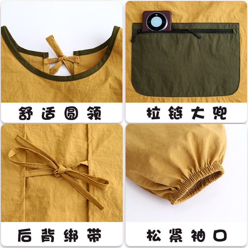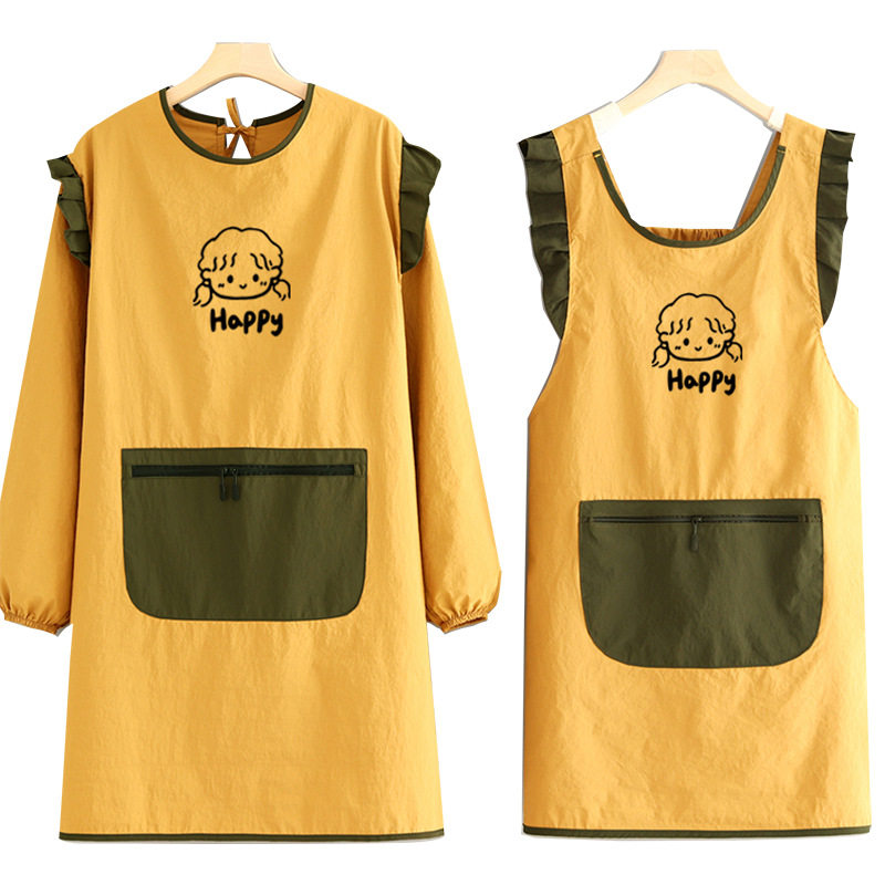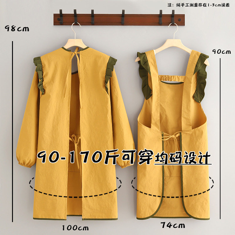 📚 厨房家用防污罩衣成人做饭餐饮专用长袖围裙防泼水工作服洋气围腰