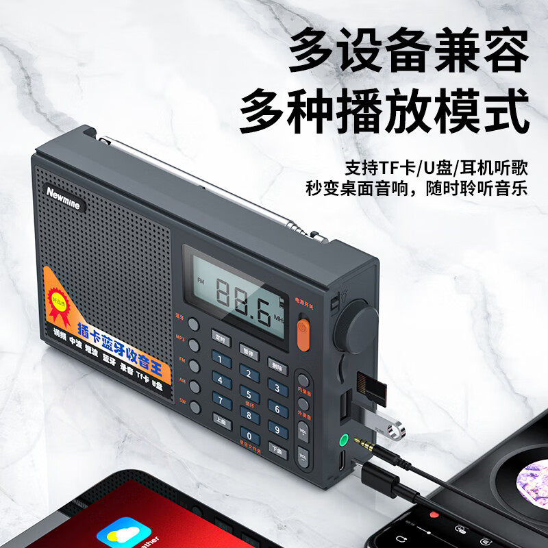 📚 纽曼全波段收音机老年人专用蓝牙音响英语四六级随身听天线插耳机