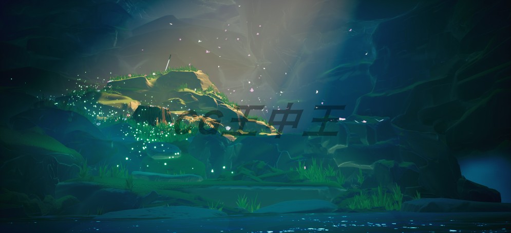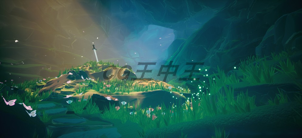📚 虚幻4UE5卡通风格化山洞圣光剑武器遗忘之地瀑布光线花草萤火场景