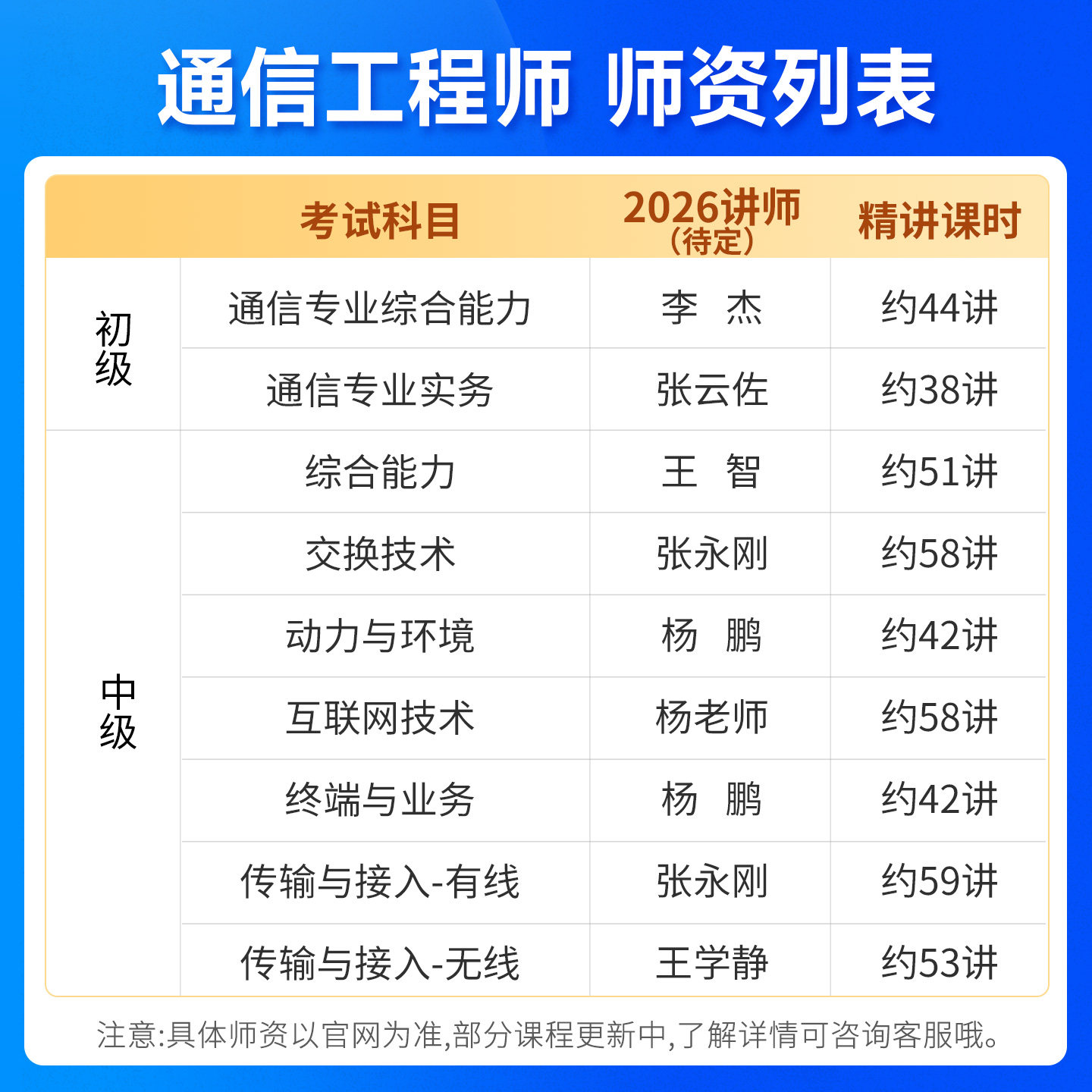 📚 中大网校2026年初级中级通信工程师网课视频精讲课程动力终端杨鹏