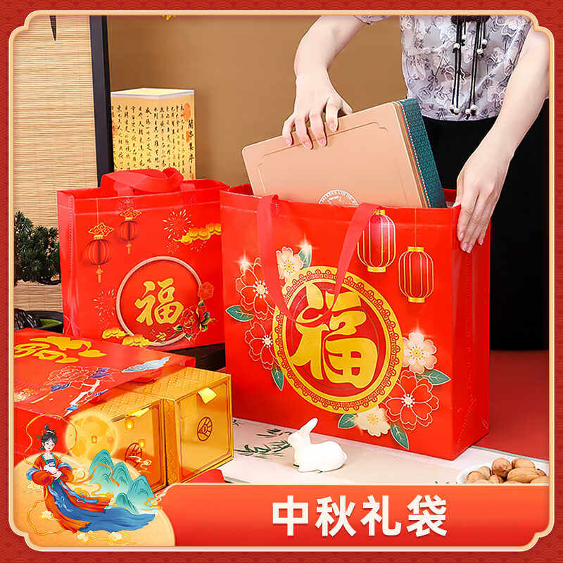 📚 国庆gd新年福礼盒包装袋手提袋装月饼坚果水果零食烟酒送礼袋子