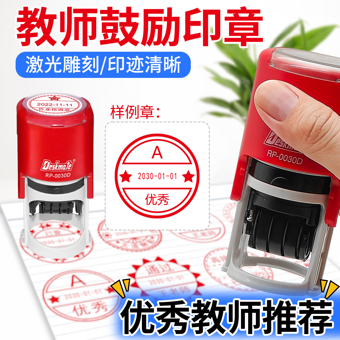 📚 日期印章可调教师批改作业神器已查已阅等级ABC评语教师批阅印章带日期优良合格Seen英文日期印章定制