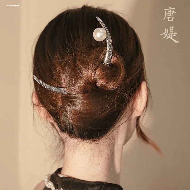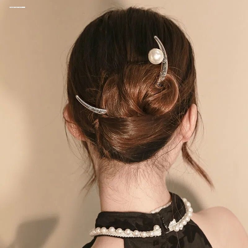 📚 中国风上弦月发簪女新中式高级感丸子头盘发簪子2022新款个性头饰