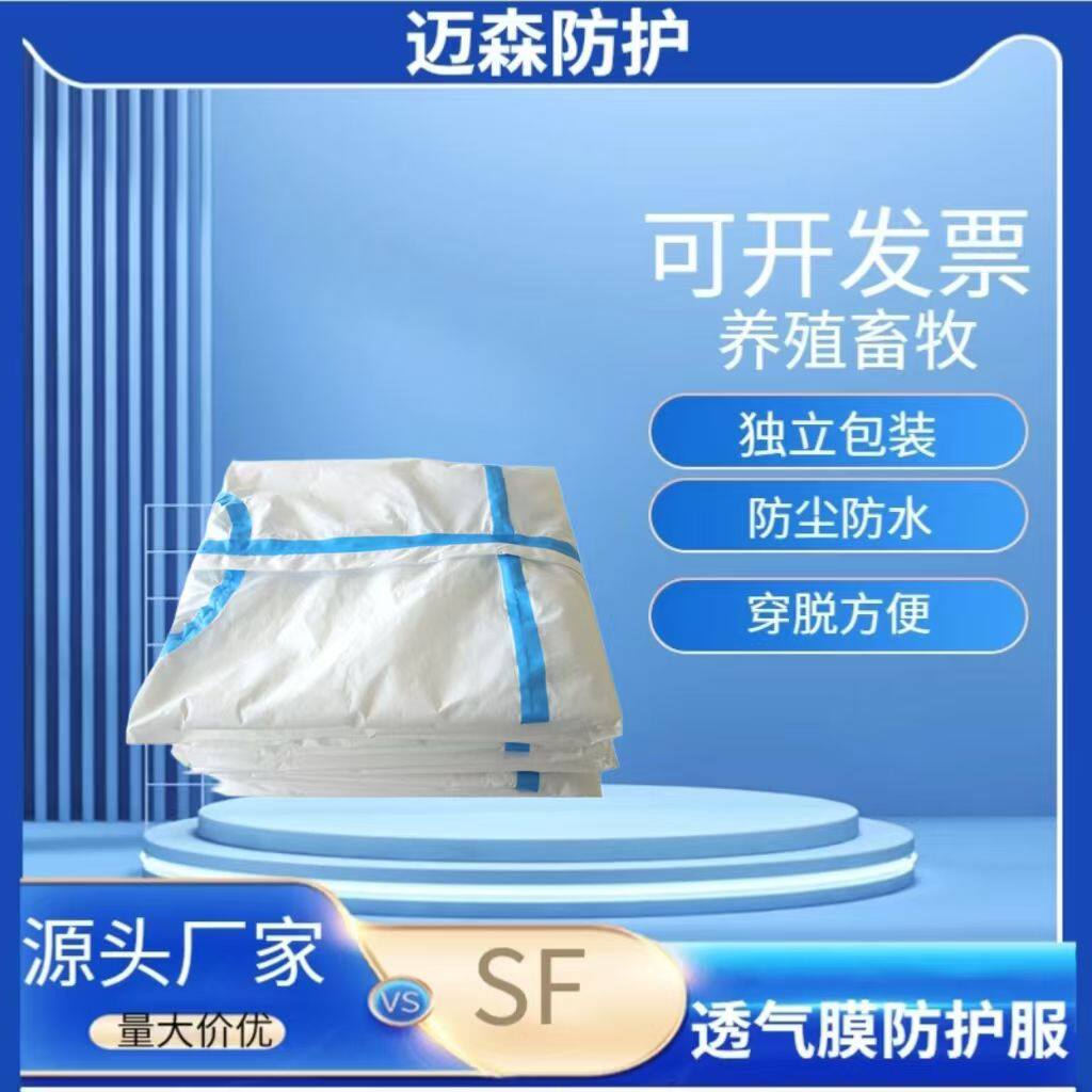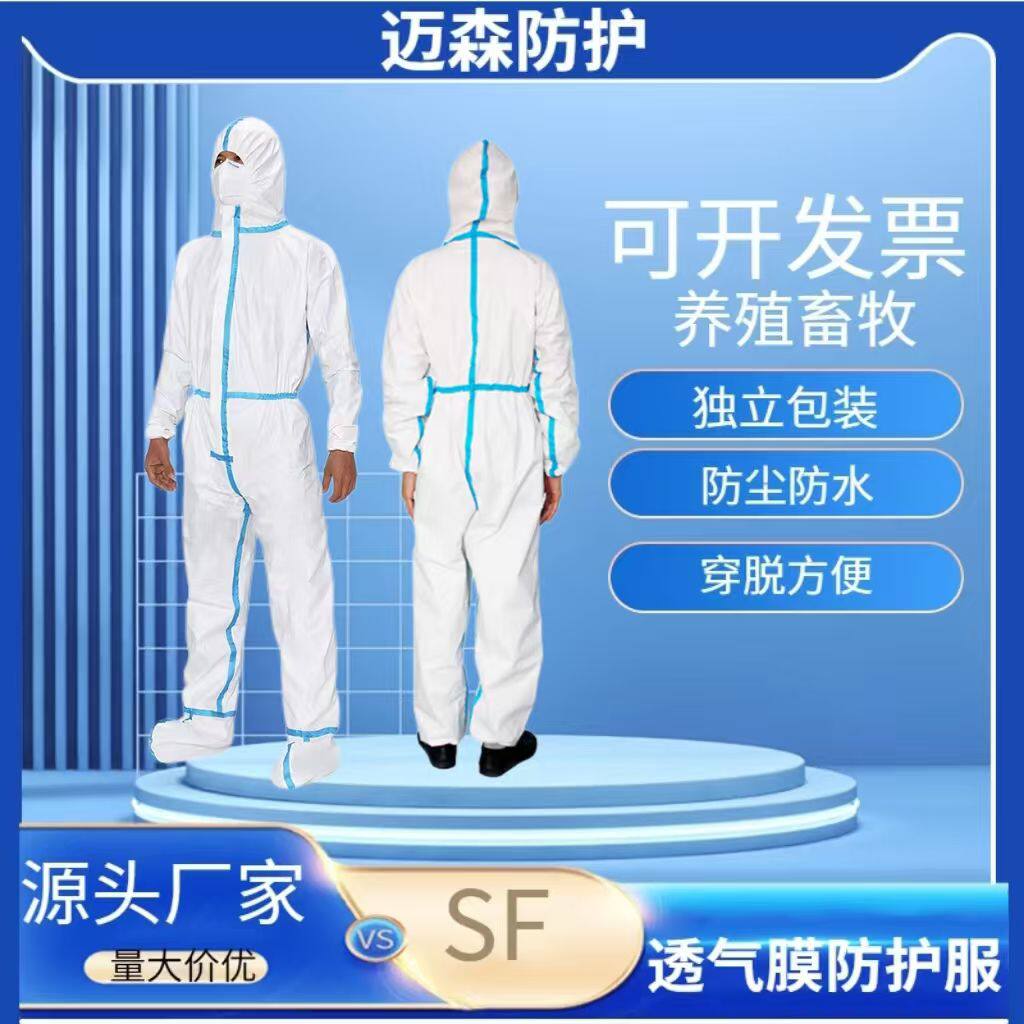 📚 一次性防护服SF透气膜连体防水防护服白色加厚专用连脚工作服养殖