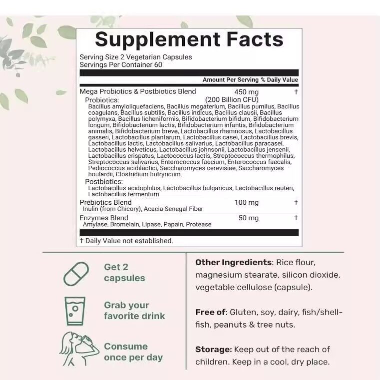 📚 Mega Probiotics 200 Billion CFU成人益生菌肠胃保健酶复合物
