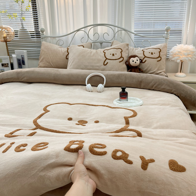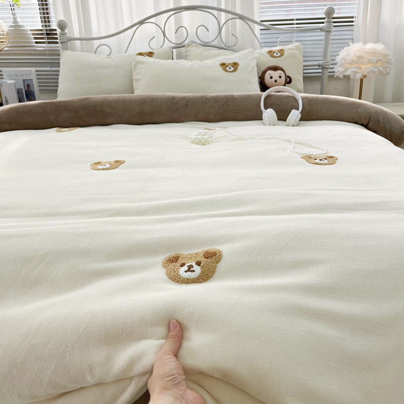 #新款牛奶绒四件套 #加厚珊瑚绒被罩 #可爱双面绒床单 #学生优惠 #温馨舒适 #双十一种草