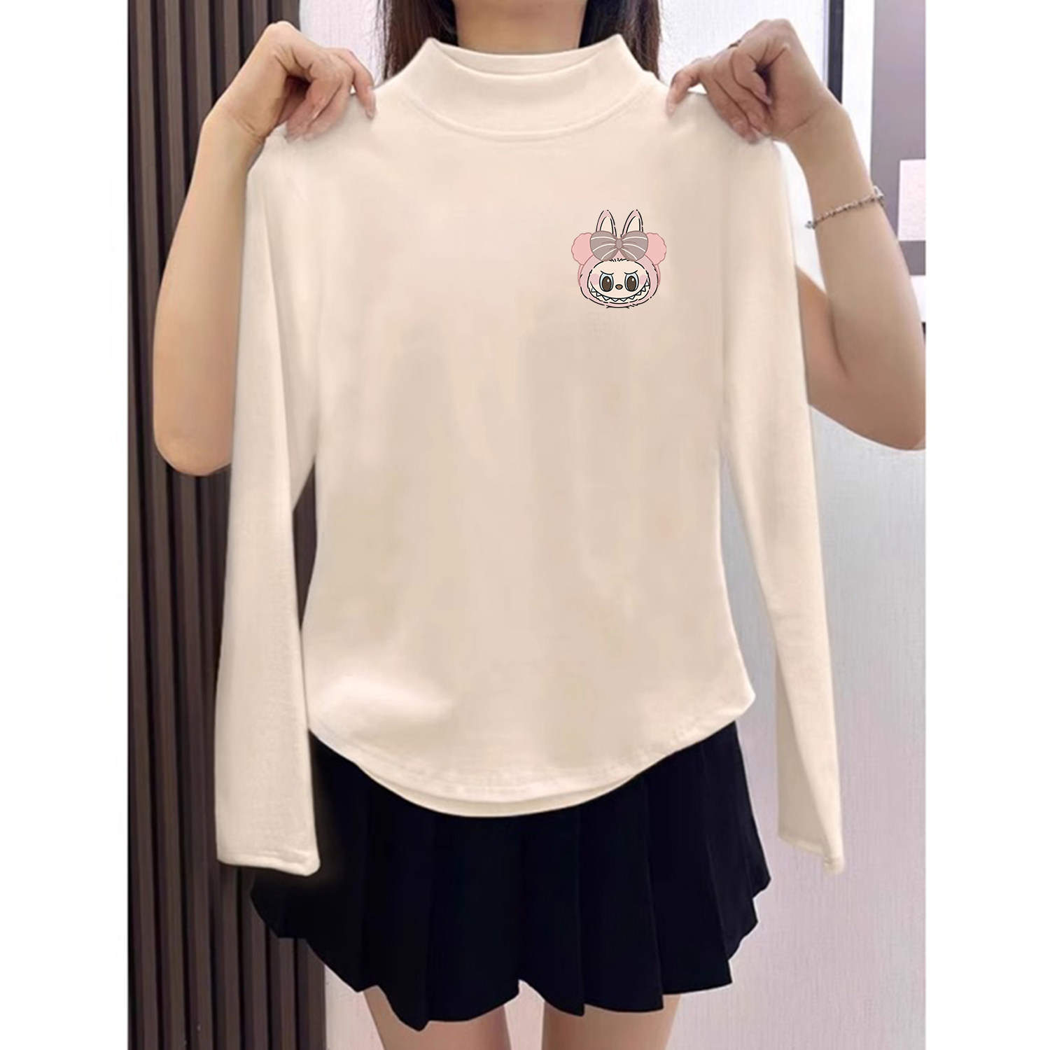 📚 女童德绒打底衫内搭短款弧形半高领秋冬儿童加厚加绒磨毛保暖上衣