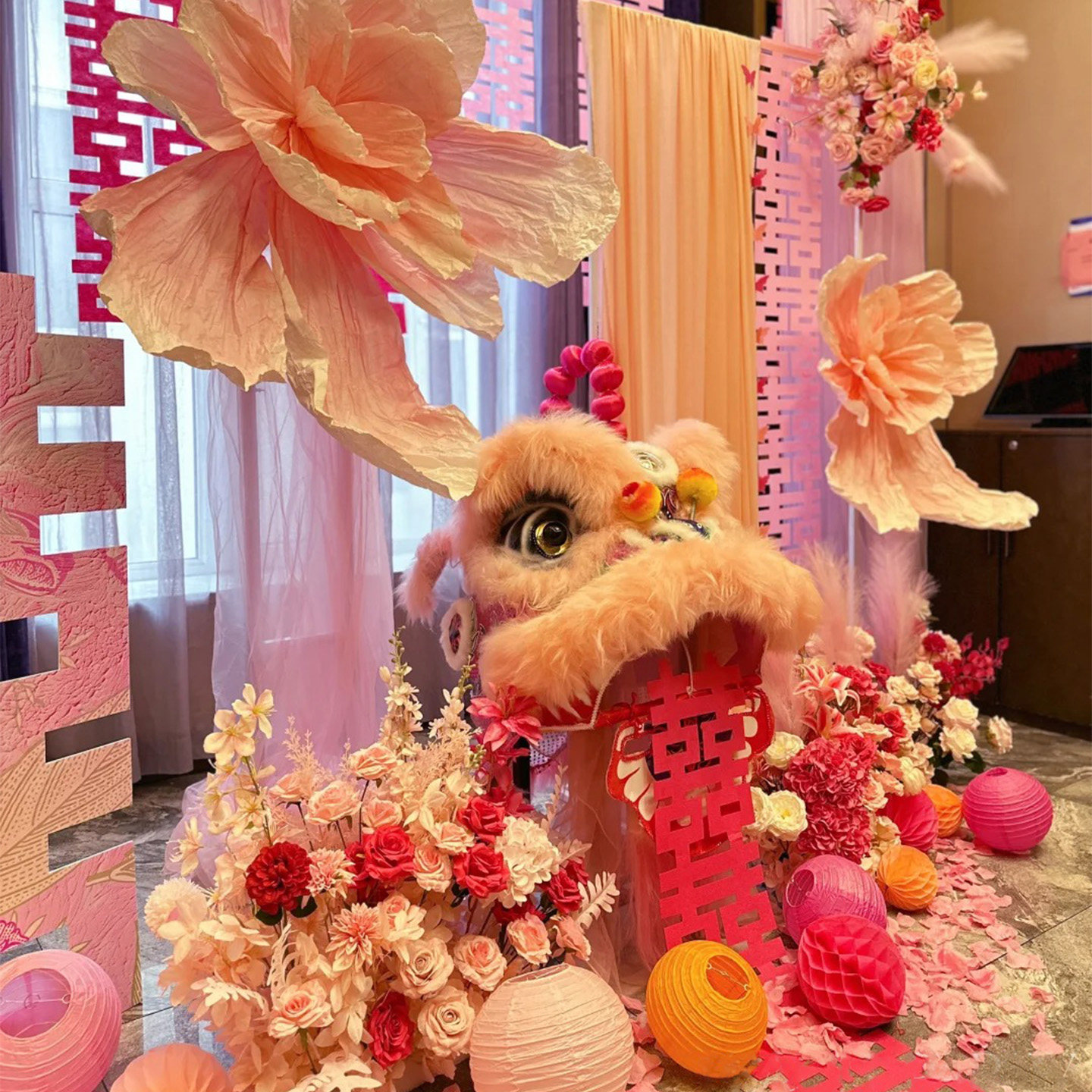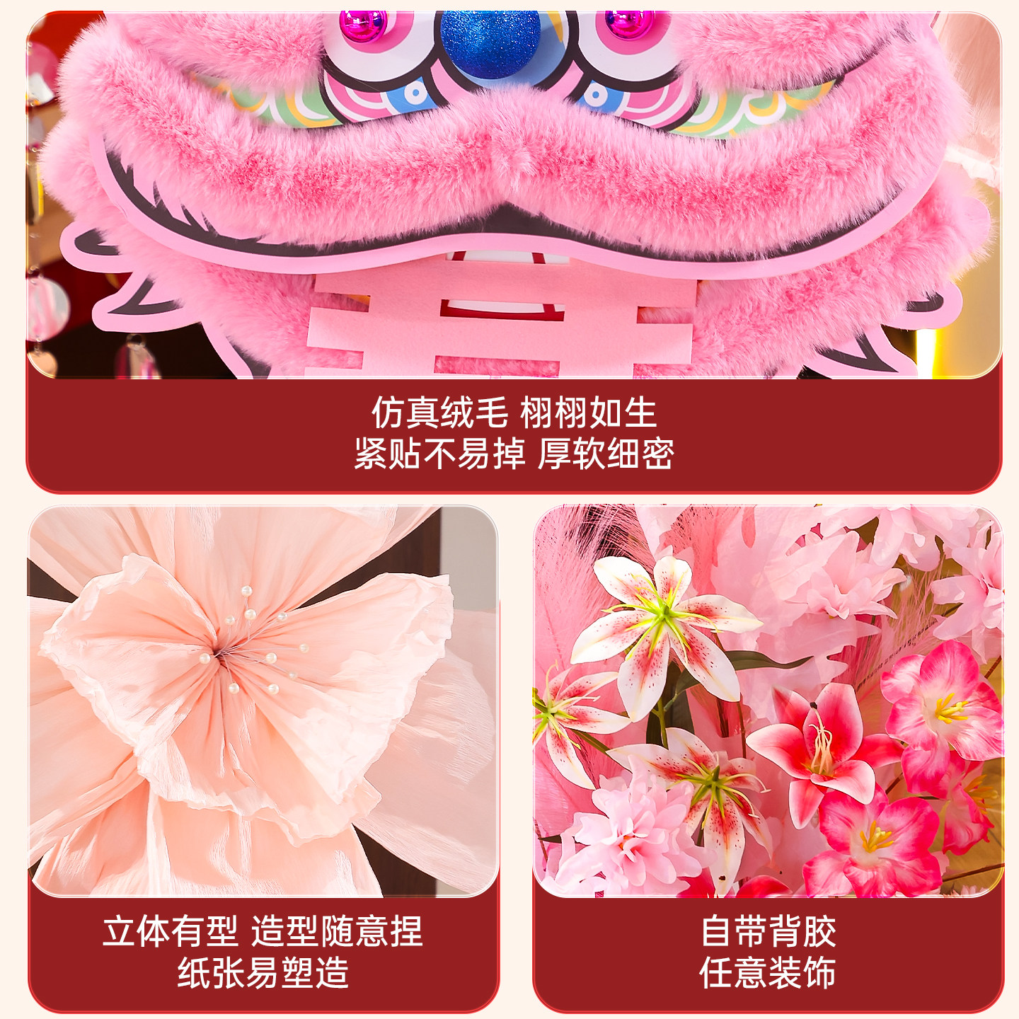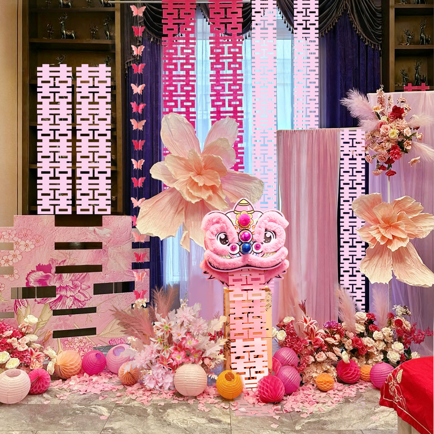 📚 醒狮婚房布置套装粉色结婚客厅喜字kt板男方酒店婚礼晨袍背景装饰