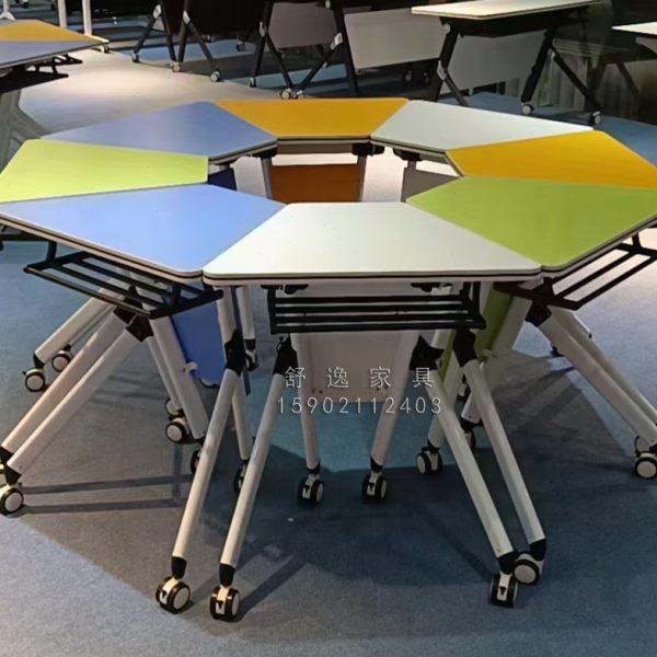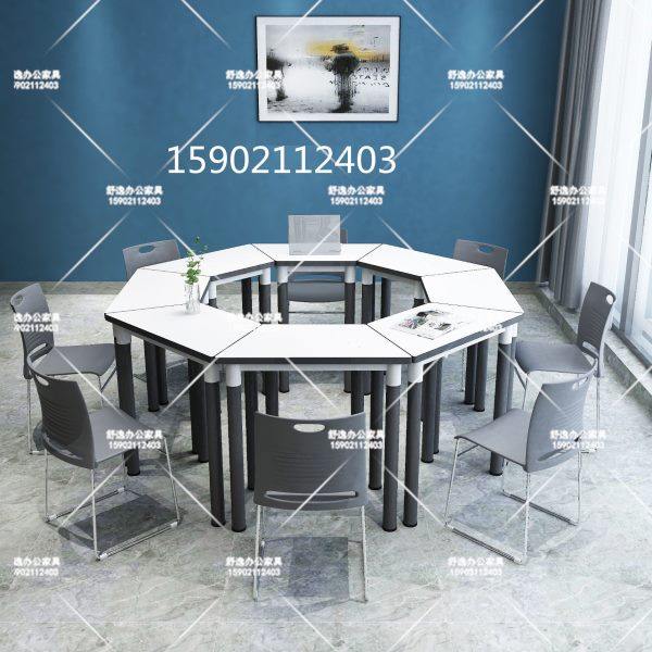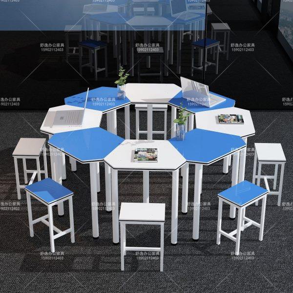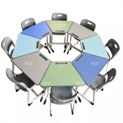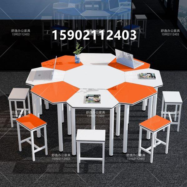 📚 学校八边形团体活动桌椅创客教室八角桌梯形组合拼接培训机构桌椅