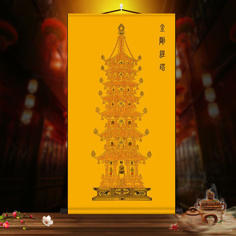📚 心经大悲咒吉祥经楞严咒金刚经念佛佛堂供奉装饰挂墙丝绸卷轴挂画