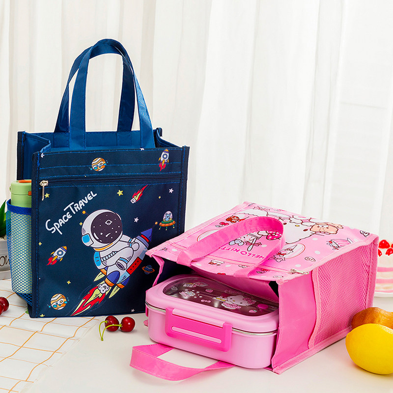 📚 可爱卡通手拎饭盒袋子小学生手提包大号儿童专用午餐盒防水便当包