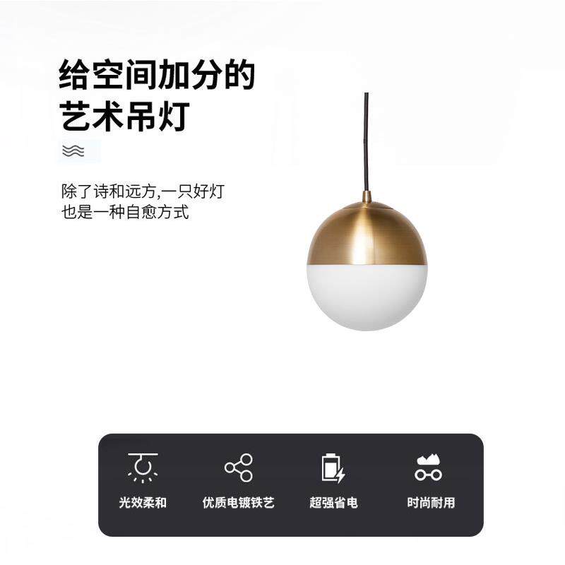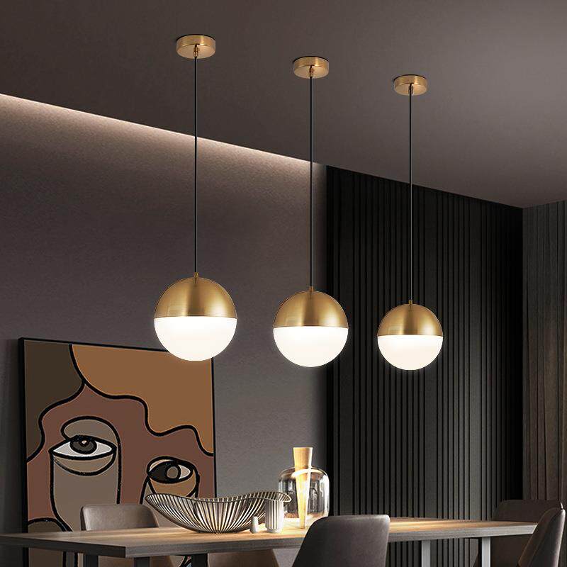 📚 北欧简约仿铜圆球书房桌吊灯设计师轻奢餐厅吧台床头橱窗单头吊灯