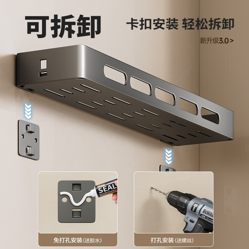 📚 卫生间置物架免打孔不锈钢浴室拐角厕所收纳洗漱台壁挂式墙上架子